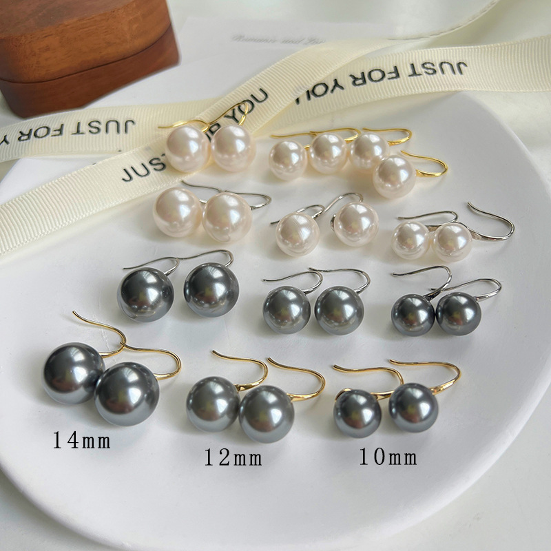 女性用650パール蚊取り線香ディスクイヤークリップ、麻グレーイヤリング、軽い高級感、高級感、痛くないピアス