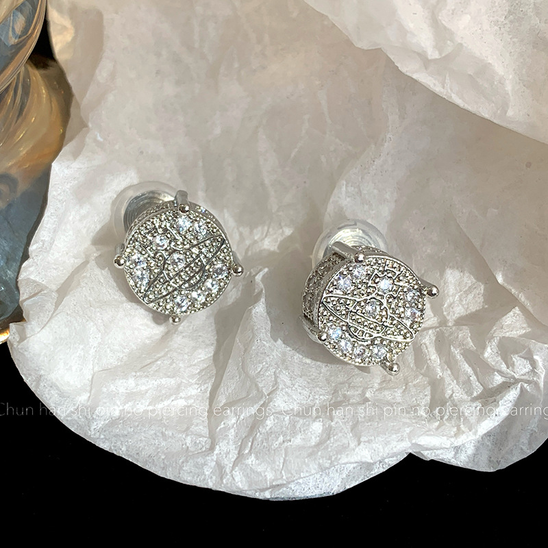 无耳洞耳夹圆形满锆土星耳环简约气质耳钉轻奢高级蚊香盘耳饰