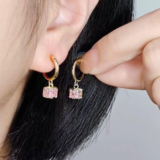 2 粉色方形锆石耳钉