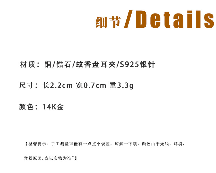 爆闪单锆蚊香盘耳夹极简清冷感耳环新款高级感简约小众百搭耳饰