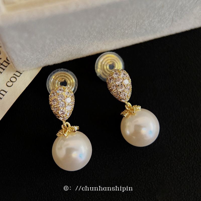 抖音と同じスタイルの水滴パールイヤリング、穴あけ不要、蚊取り線香型、銅とジルコンを使ったファッショナブルで万能な女性用イヤリング、工場直送のイヤーアクセサリー