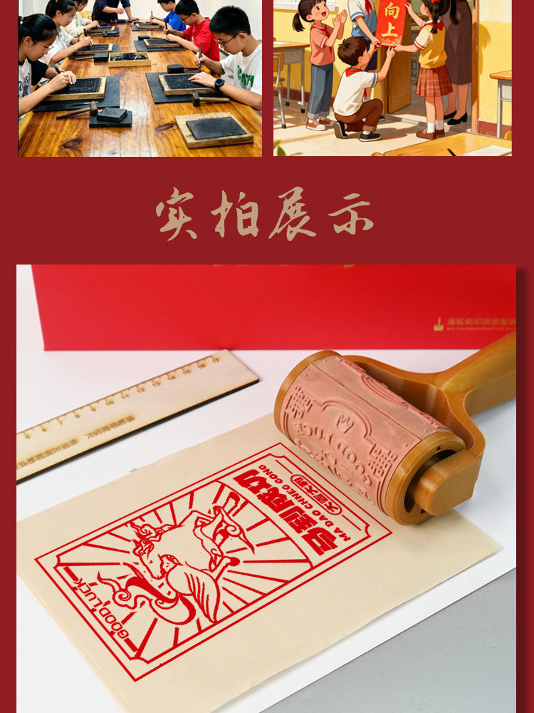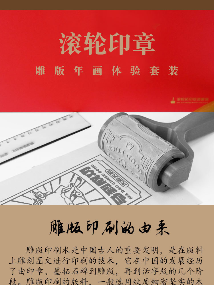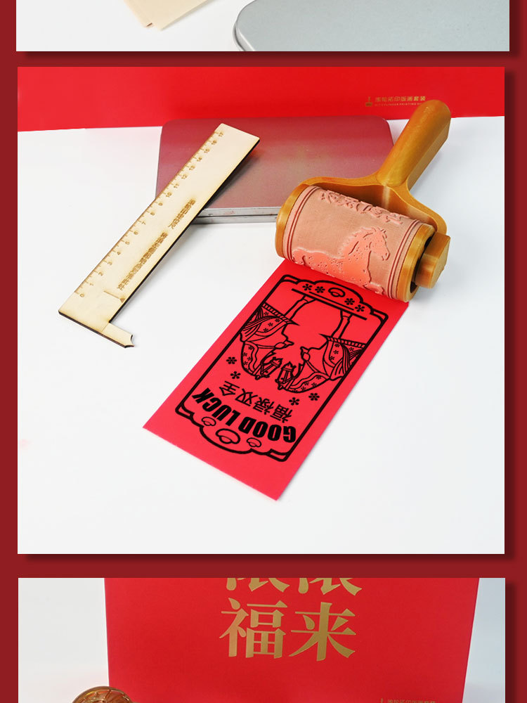 滚轮滚筒印章红包木版春节年画DIY拓印雕刻LOGO研学活动策划手帐
