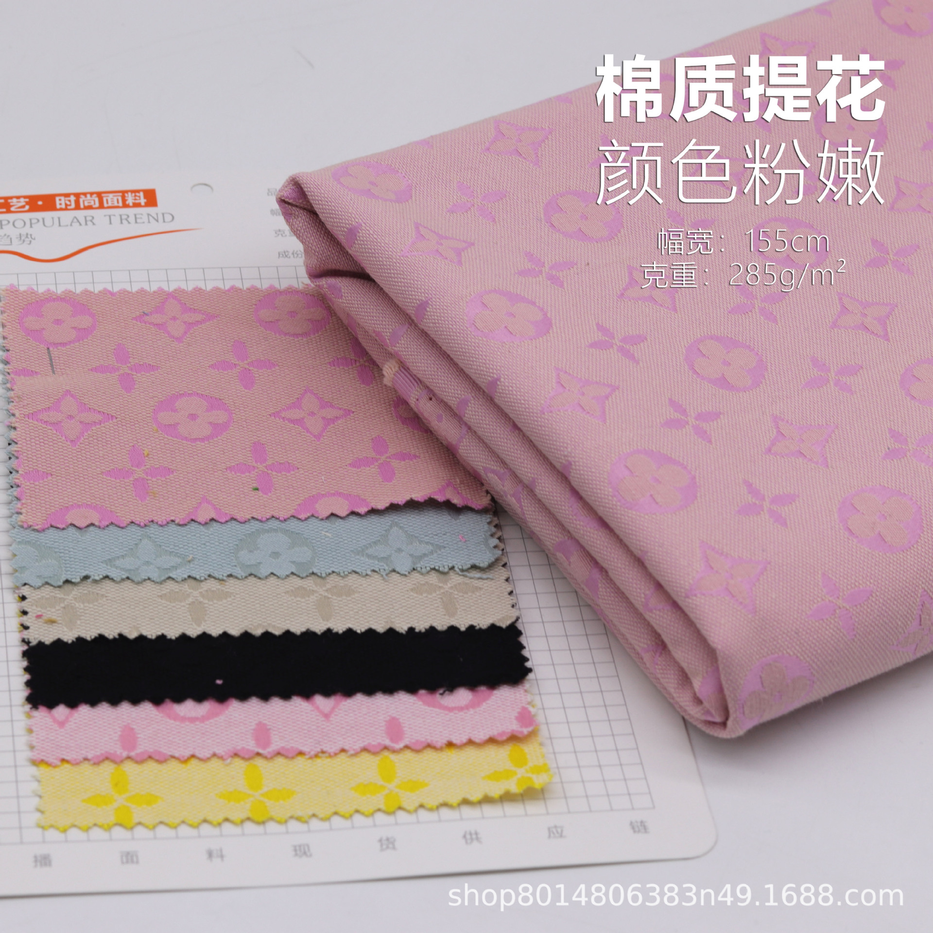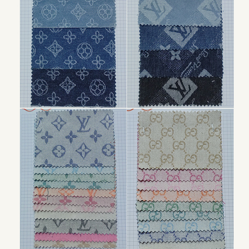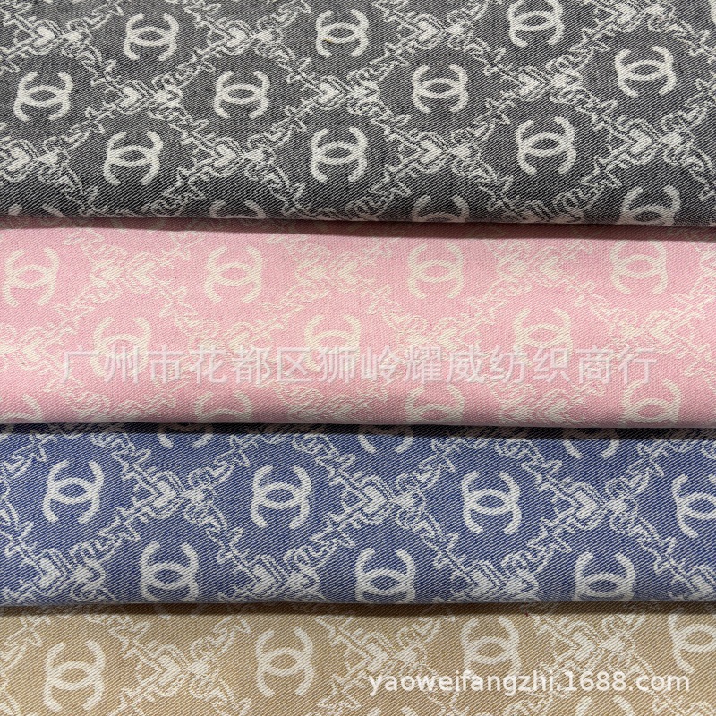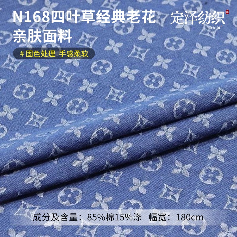 经典老花水洗牛仔布料 四叶草提花服装鞋帽DIY娃衣牛仔面料批发