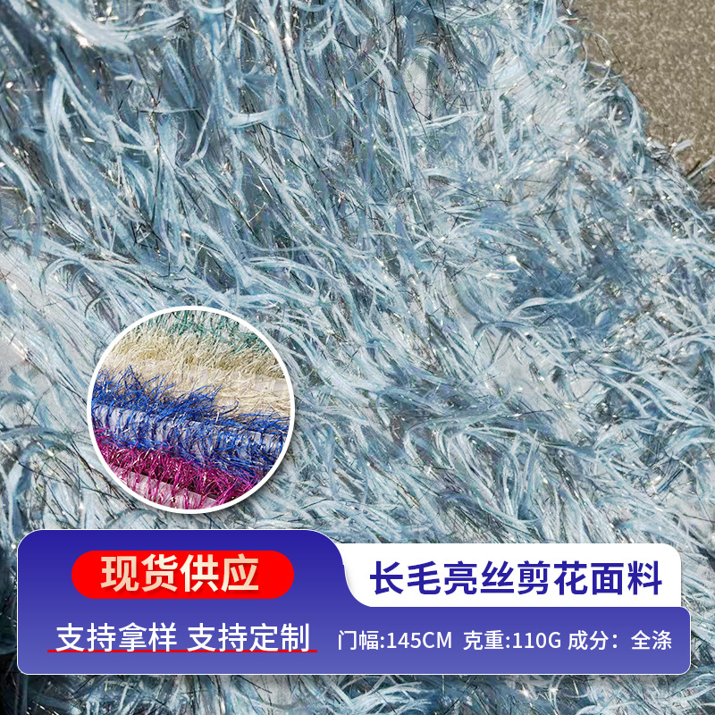 JH2652 タッセルカット先染めファッション婦人服ドレスロングヘア光沢のあるシルクフェザーポリエステルシースルー生地
