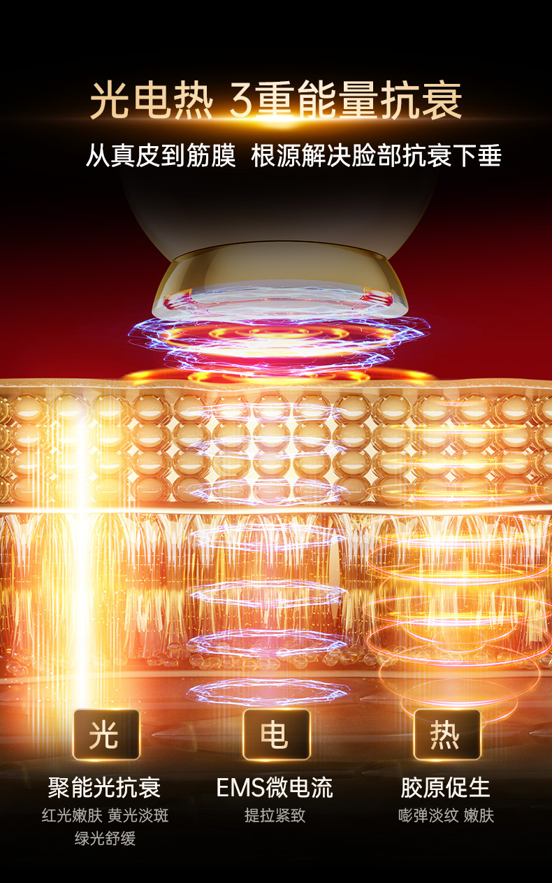 【黄金胶原炮】EMS微电流大熨斗射频美容仪提拉紧致彩光导入家用