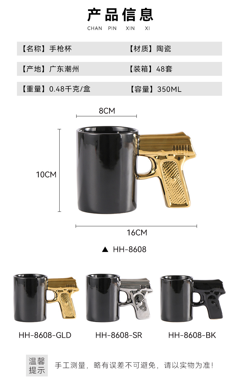 颜色 手枪杯-黑杯金柄,手枪杯-黑杯银柄,手枪杯-黑杯黑柄