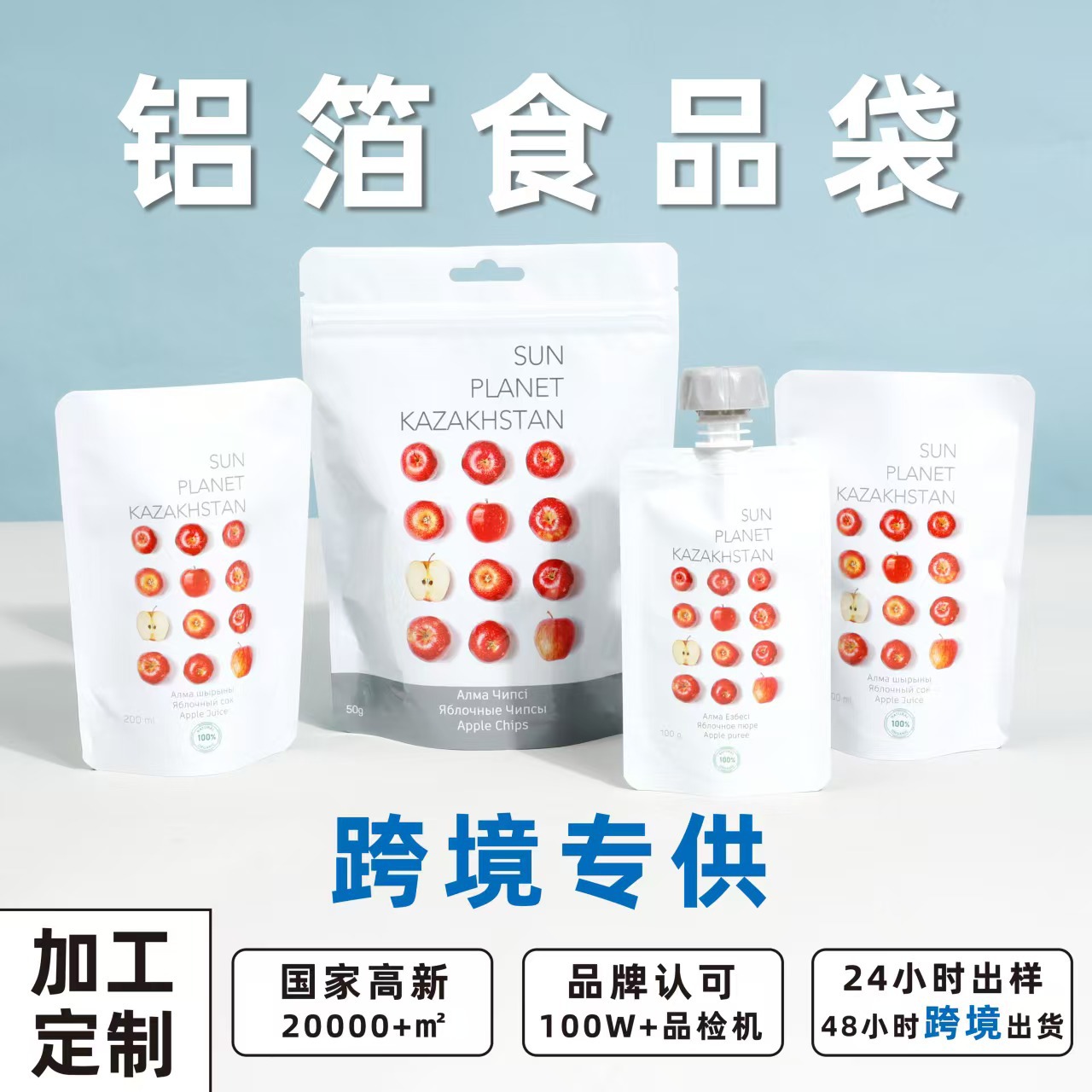 国境を越えたアルミ箔食品包装袋のカスタマイズ、八方シールアルミ箔食品袋、スナック菓子自立包装袋のカスタムメイド