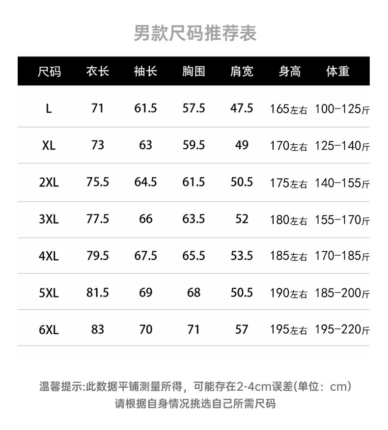 尺码 L,XL,XXL,XXXL,4XL,5XL,6XL