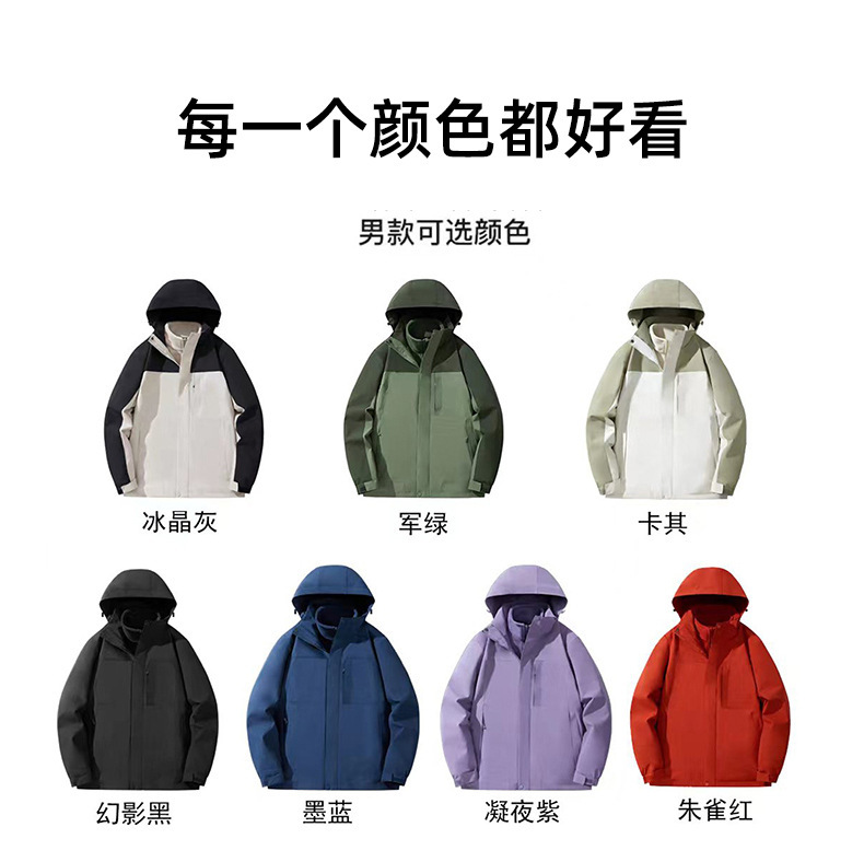2025年冬季新款冲锋衣女男三合一可定LOGO防风防水羽绒外套套装