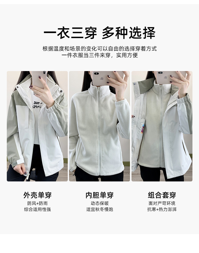 2025新款三合一冲锋衣女防风防水户外跑步时尚百搭登山服运动外套