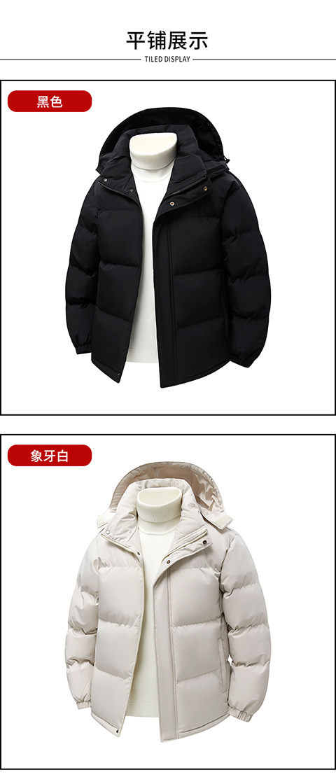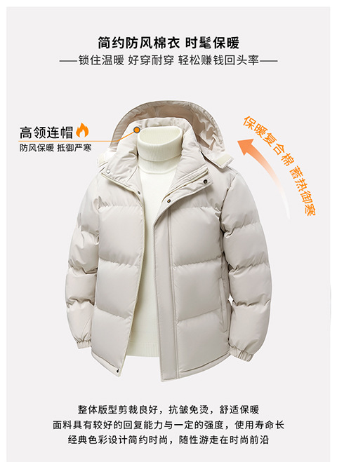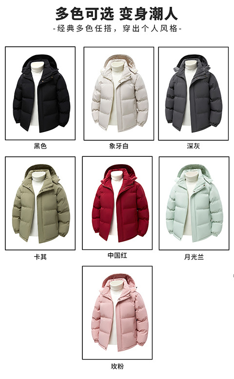 纯色简约情侣连帽棉服2025冬季新款休闲百搭棉衣简约上衣可拆卸帽