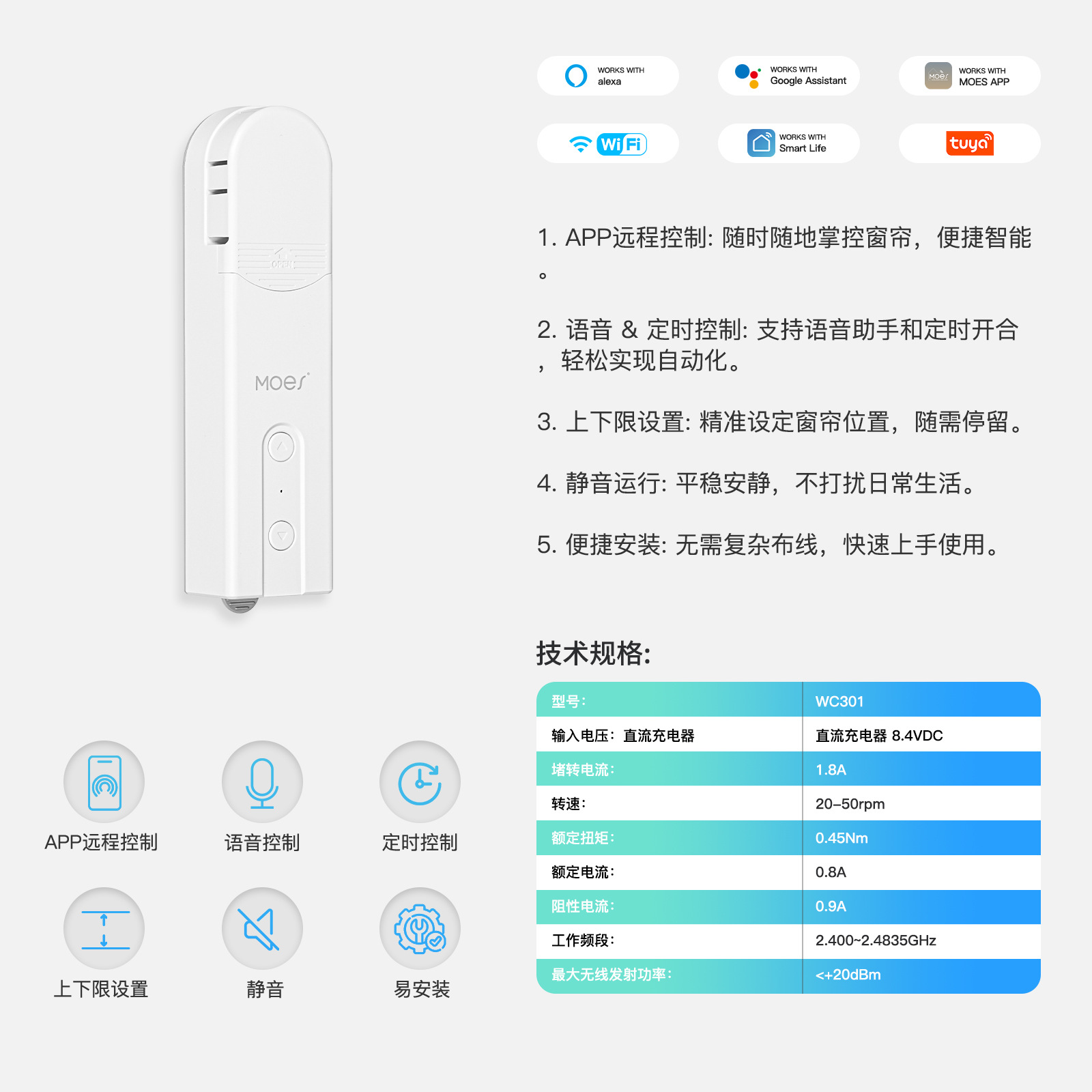 涂鸦智能家居WiFi窗帘电机app控制拉绳遮阳帘太阳能充电拉绳电机