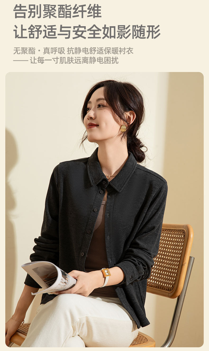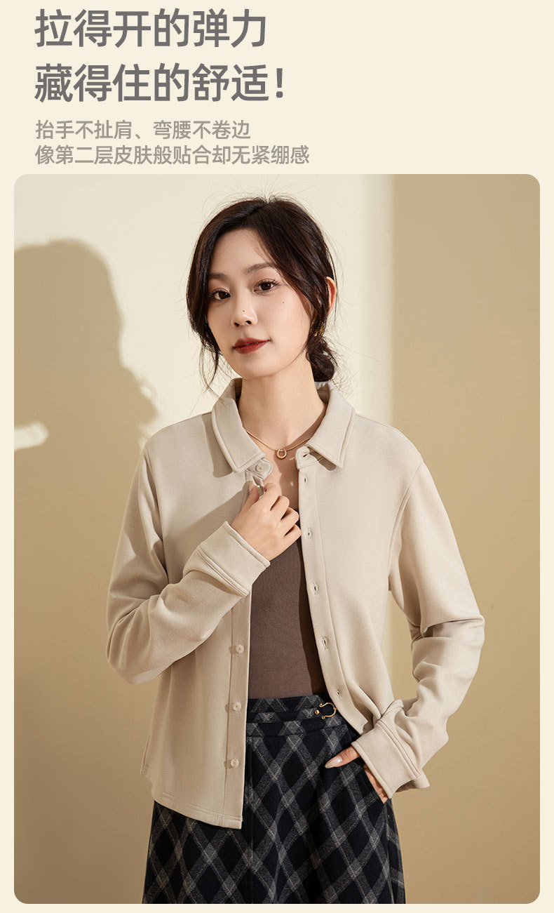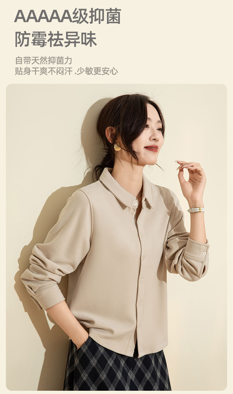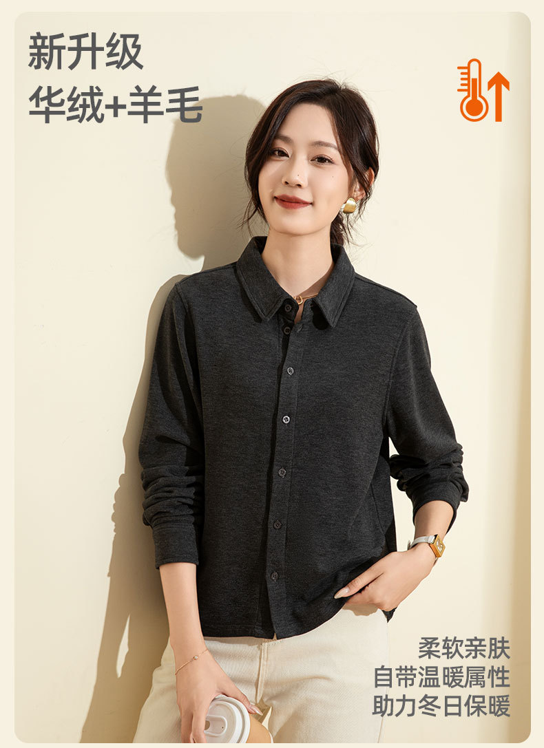 秋冬用抗菌デロン保温衣、レディース保温シャツ、秋冬用厚手シャツ、女性用ゆったりドールカラーシャツ