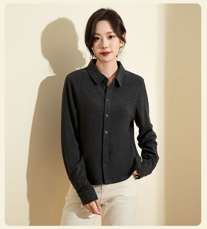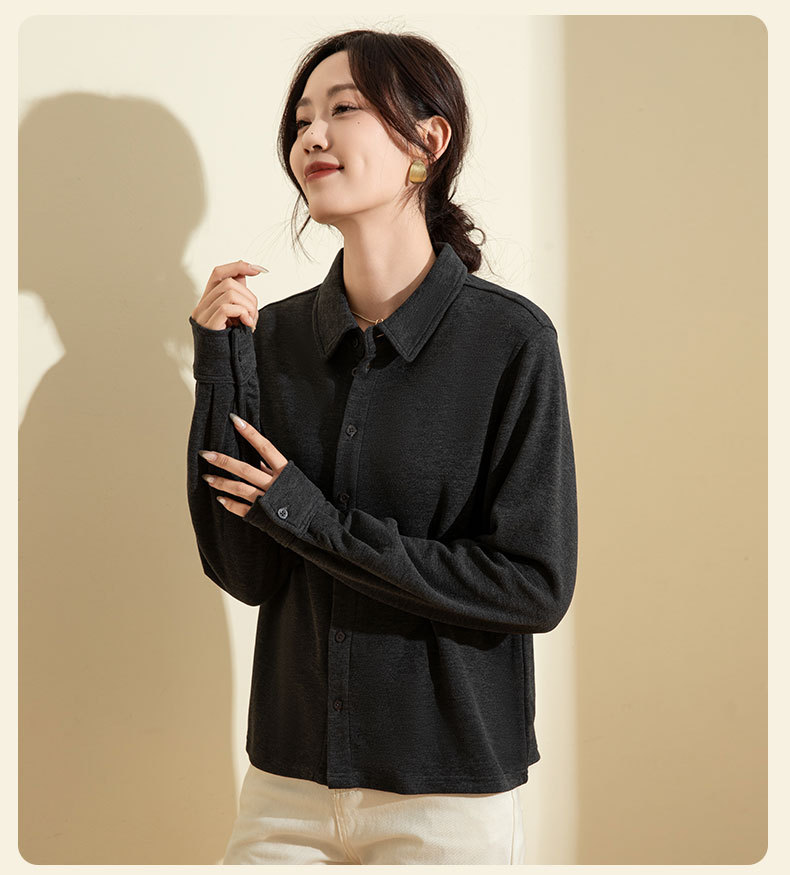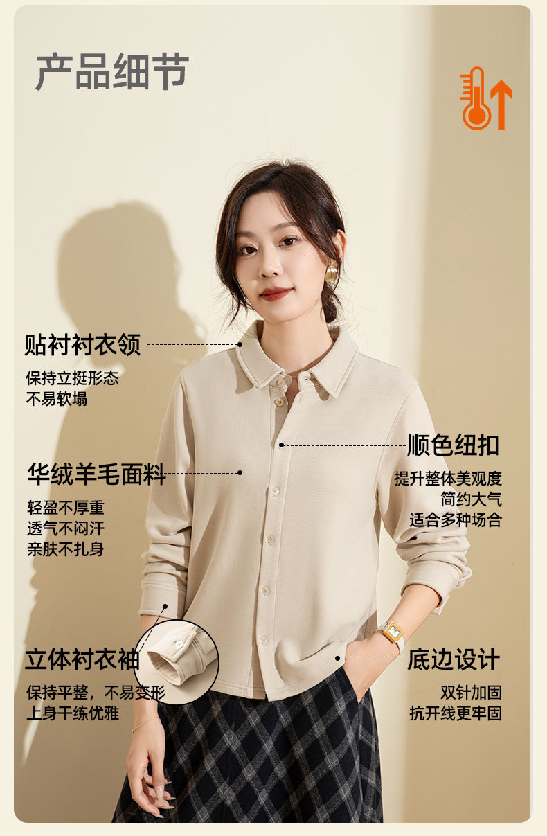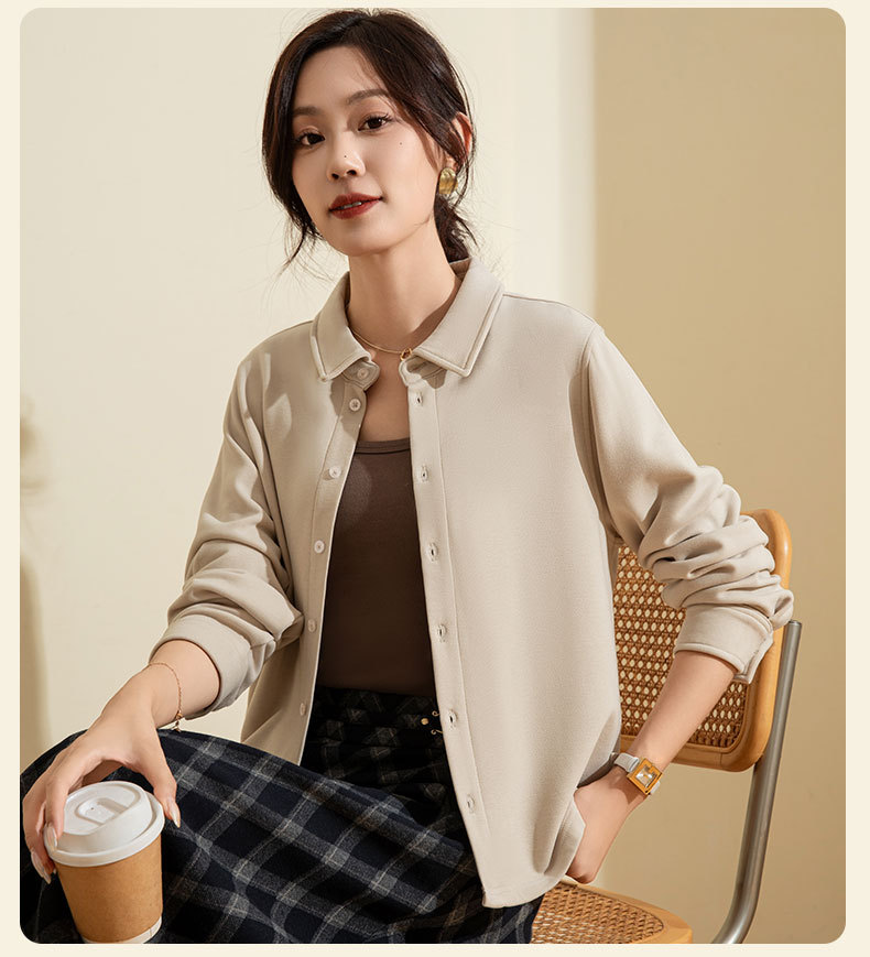 秋冬用抗菌デロン保温衣、レディース保温シャツ、秋冬用厚手シャツ、女性用ゆったりドールカラーシャツ