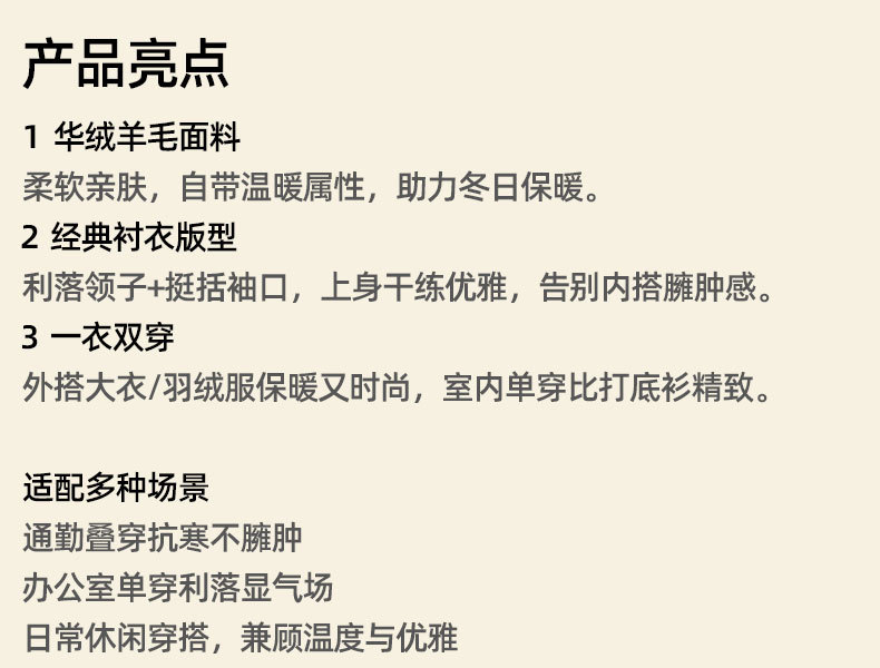 厚手の両面のデコルテのシャツの女性の秋冬の毛を磨いてファッション的なデザイン感があります。