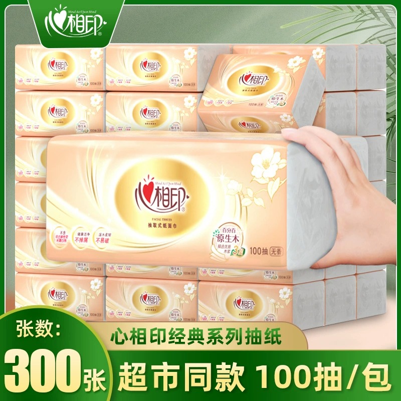 心相印抜き紙卸売り家庭用ティッシュトイレットペーパーはティッシュを入れてナプキンを3層100引きます。