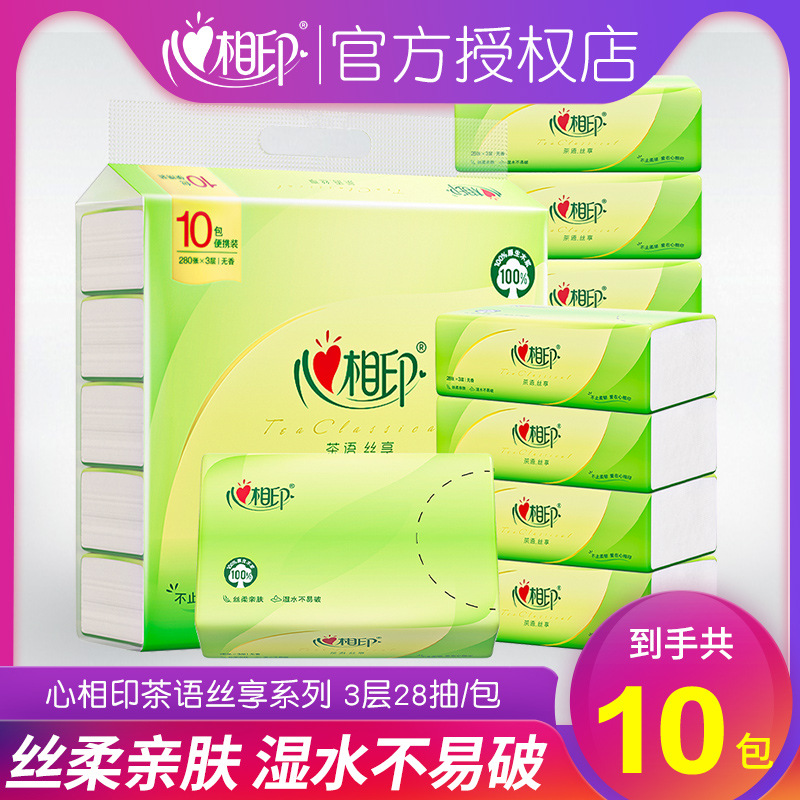 心相印茶语丝享小包便携抽纸餐巾纸3层28抽10包大张纸巾批发代发