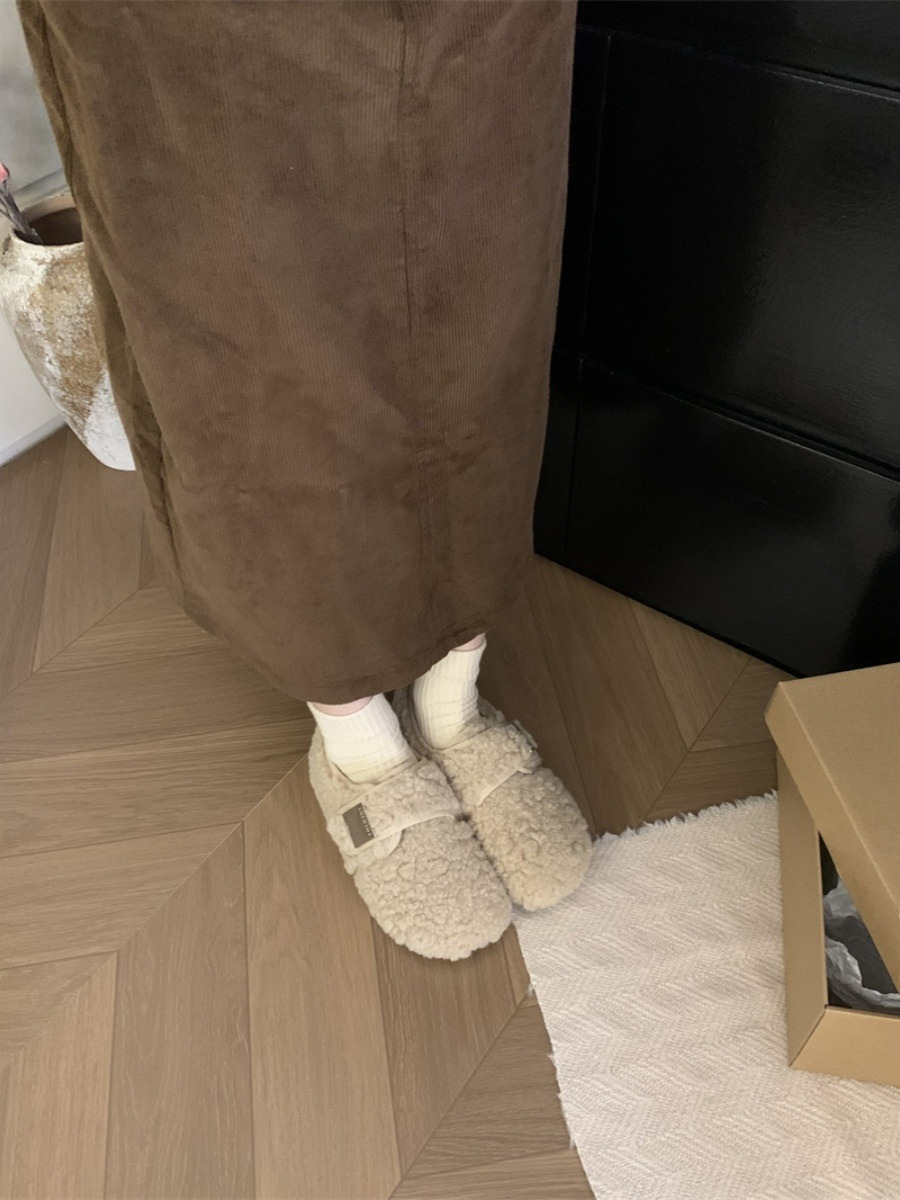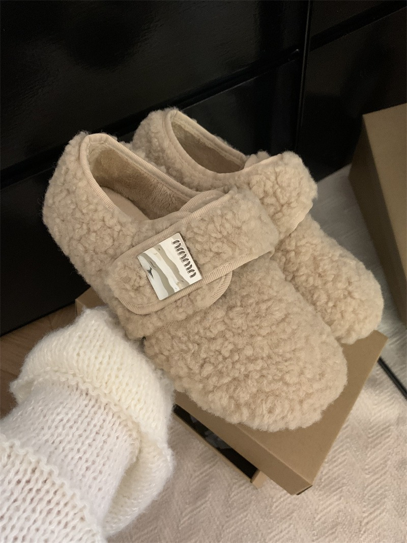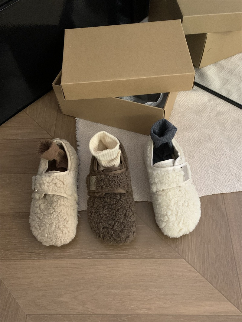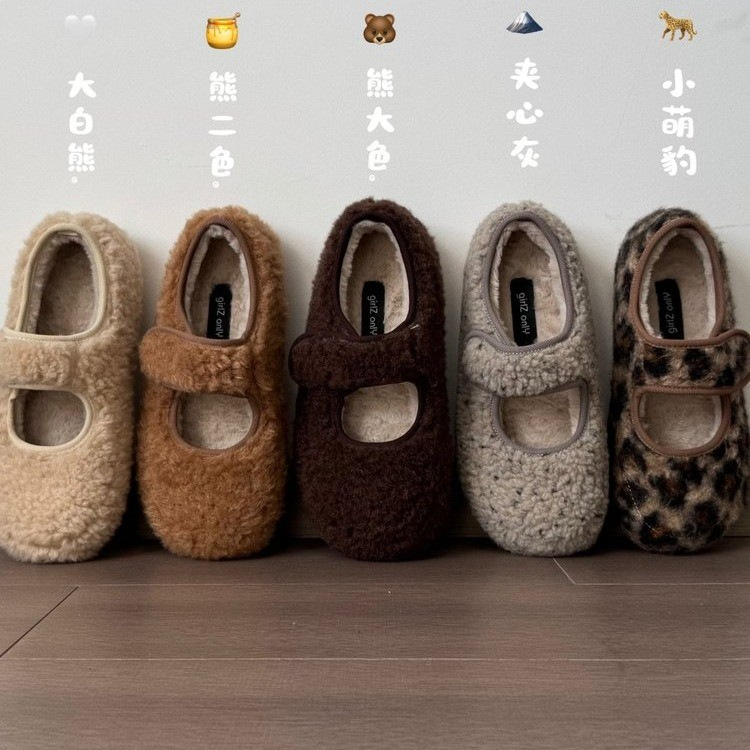 网红加绒小熊面包鞋法式加绒面包鞋女冬季一脚蹬毛毛单鞋女保暖棉