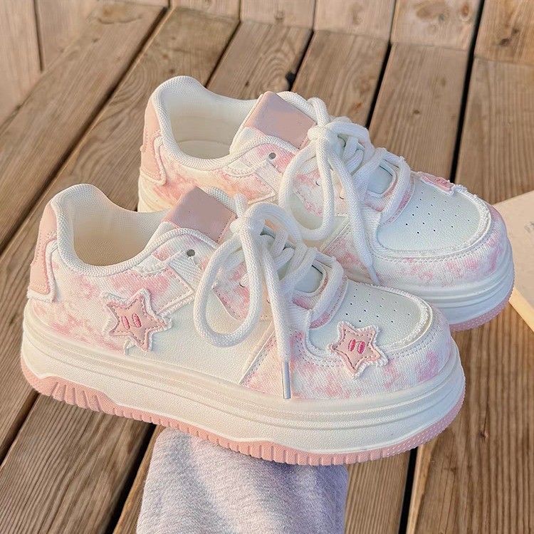 靴のカジュアルシューズが爆発した学生は春2025国潮広脚ズボンにファッションの厚い底の白い靴を配合している