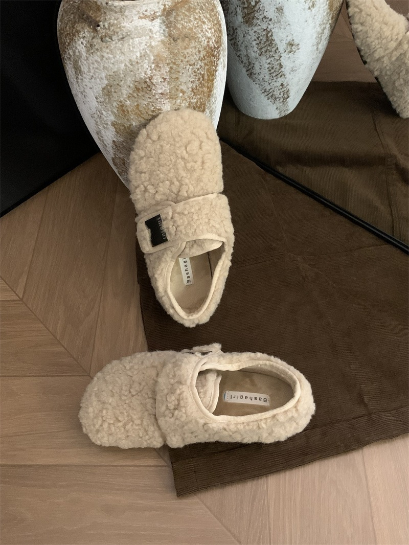 2025年秋冬季新款乐福鞋女保暖加绒羊羔毛毛鞋仙女可踩跟皮带扣豆