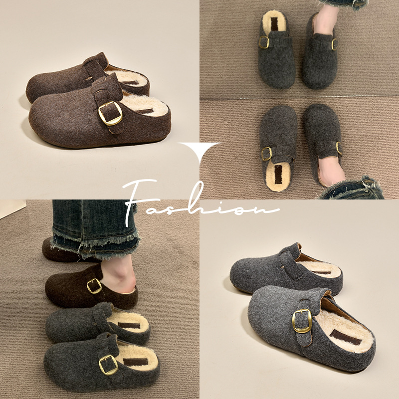 葡萄妈同款 保暖加绒内增高毛毛半拖外穿厚底勃肯女鞋2025秋冬款