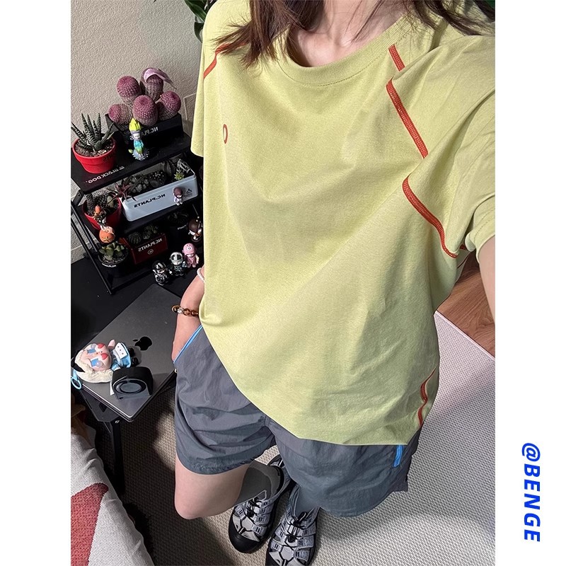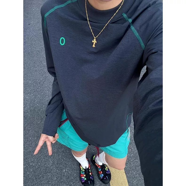 2025新款户外防晒拼接撞色骑行运动速干圆领打底ins长袖T