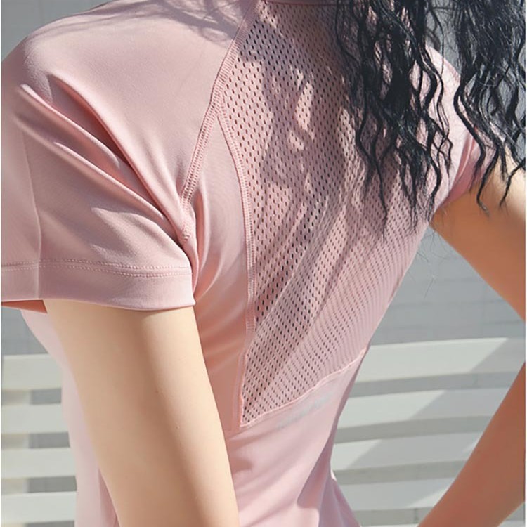 スポーツ半袖レディースメッシュ通気性ヨガウェア速乾性痩身スポーツTシャツ薄型ランニングネットセレブフィットネスウェア夏