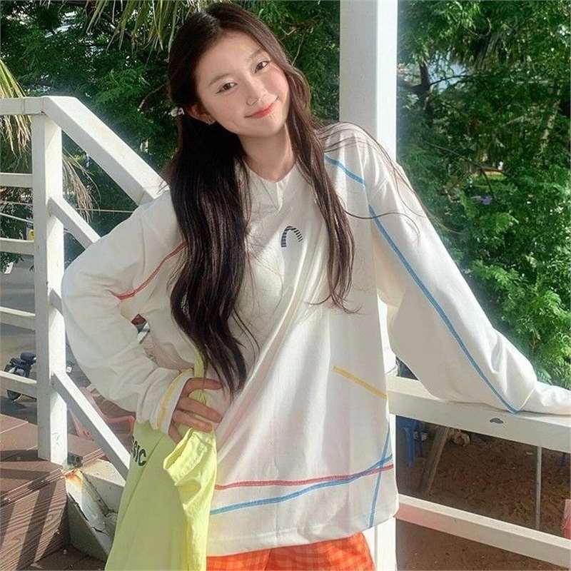 美式白色速干长袖t恤女夏薄款慵懒松弛感防晒罩衫羽毛球衣运动服