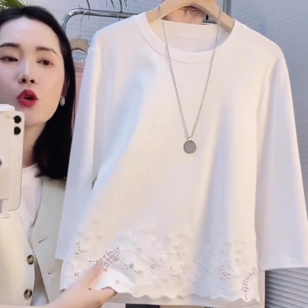 W2F200克95棉5氨纶 2025春秋季新款韩版长袖T恤女设计感