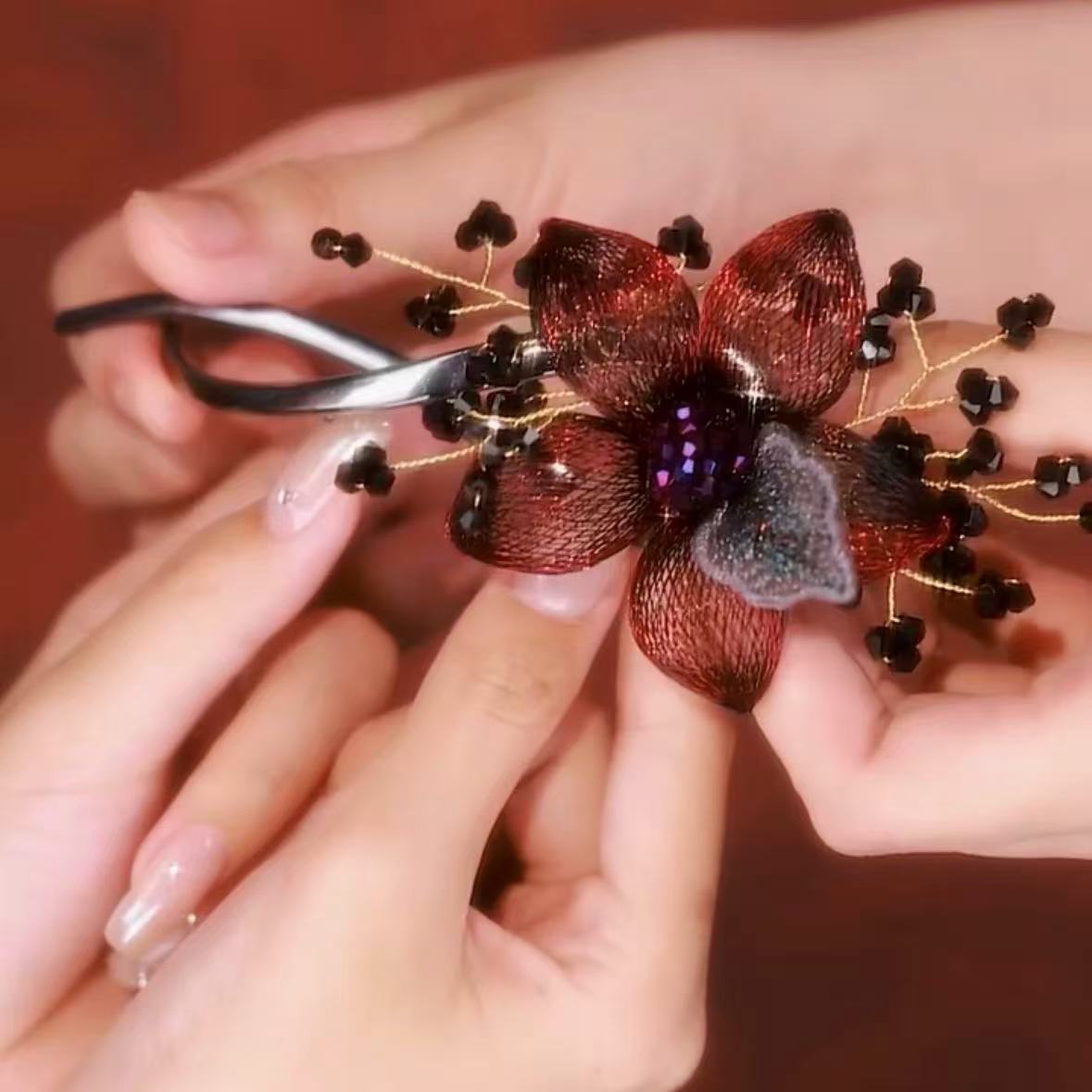 铜丝手工编织花朵抓夹气质盘发后脑勺夹头饰立体双层花朵发抓温婉