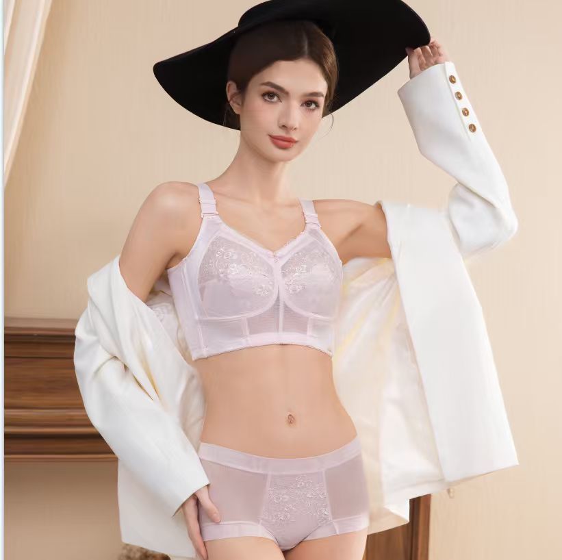 外側に拡がるタイプのブラジャー、大きな胸を小さく見せる、垂れ防止レースブラ、ソフトワイヤー入り調整可能高級ブラ、副乳を寄せ集める