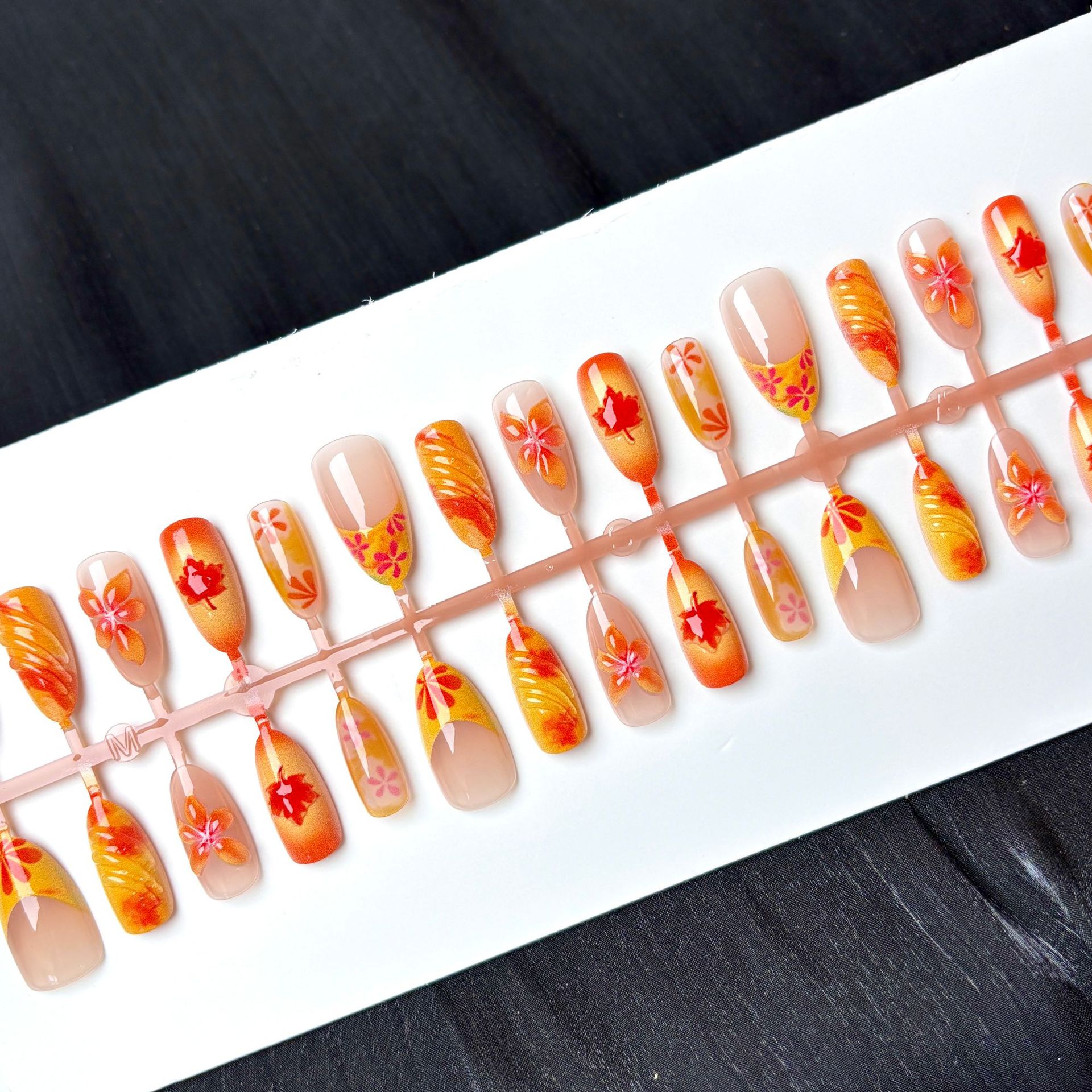 秋冬爆款红色落叶晕染氛围感穿戴甲跨境热销滴胶法式鱼尾美甲贴片