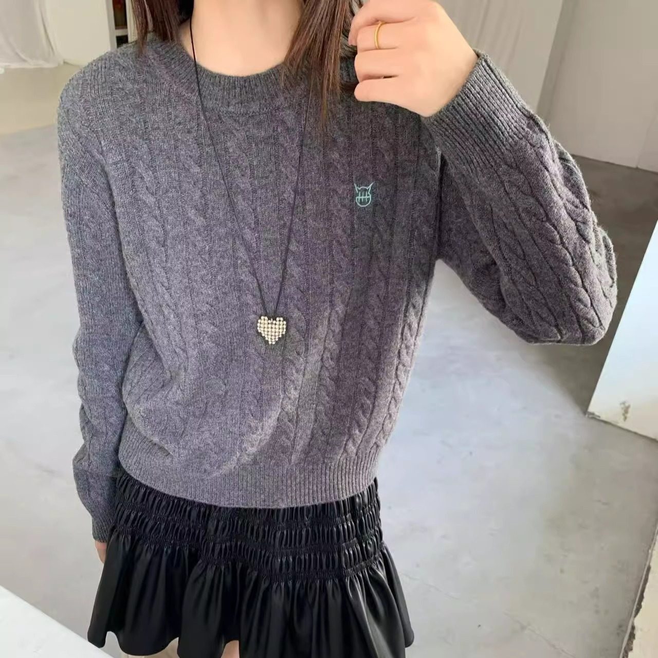 欧洲站2025早秋新款圆领长袖卡通刺绣麻花编织宽松百搭针织