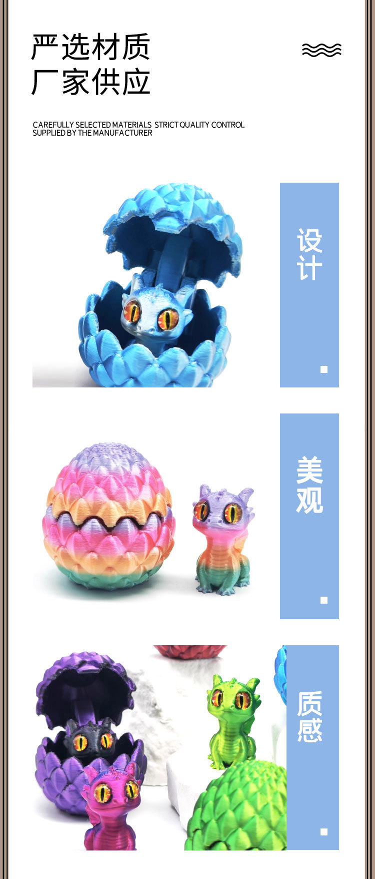 厂家创意潮玩摆件3D打印玩具萌宠礼物模型手办用翻盖龙蛋小龙套装