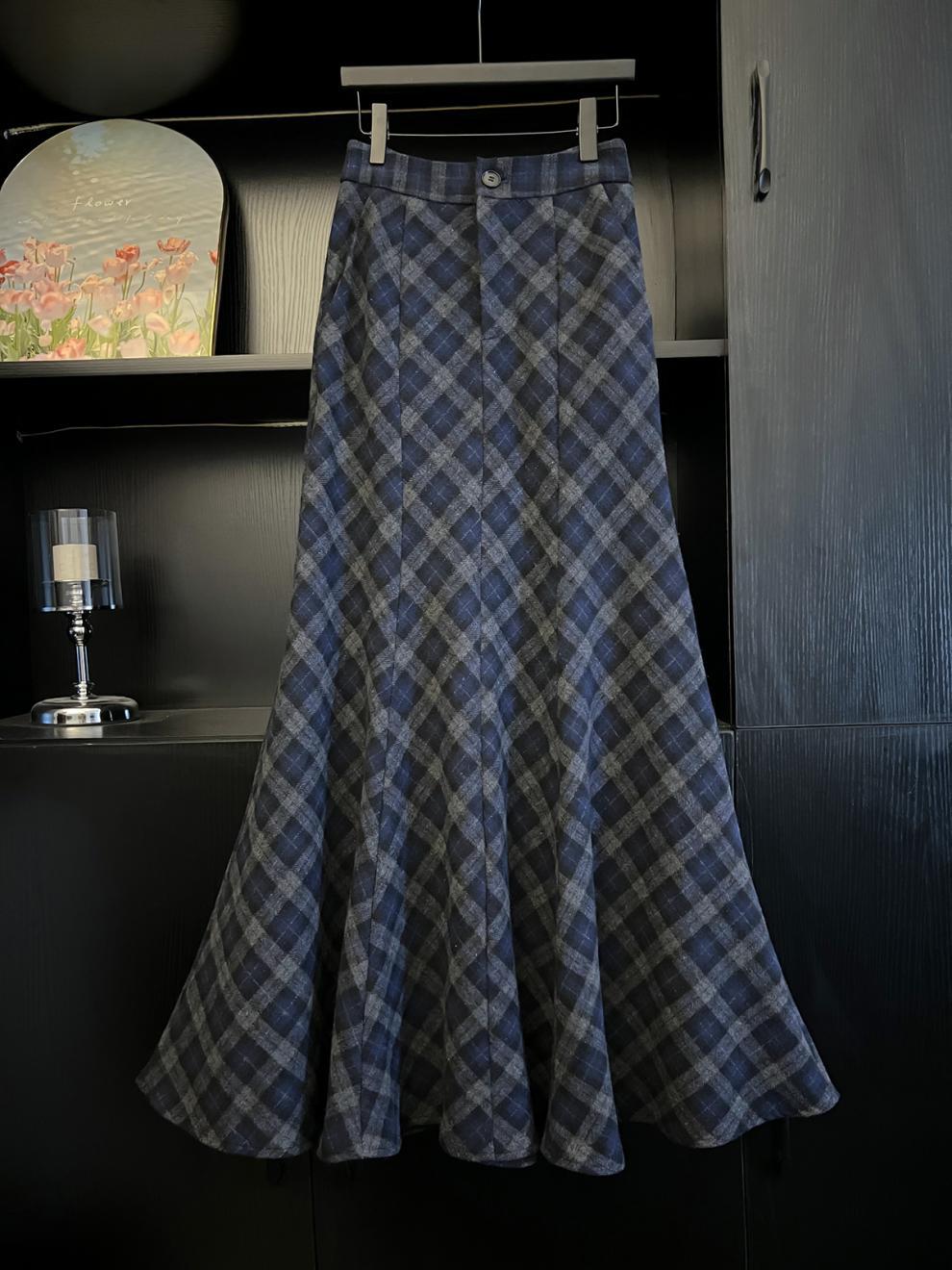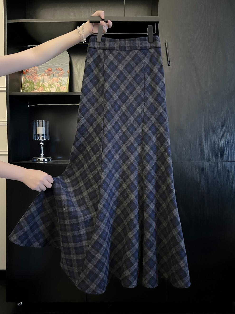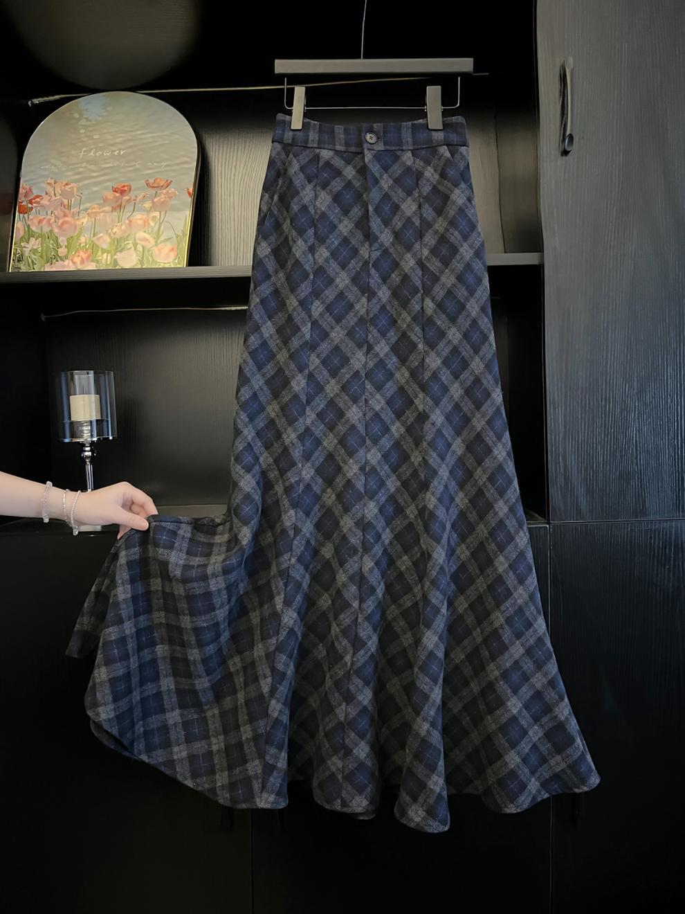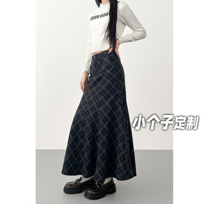 150小矮个子复古格子半身裙女冬季高腰中长款格纹包臀裙a字鱼尾裙