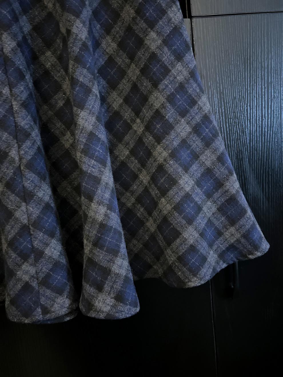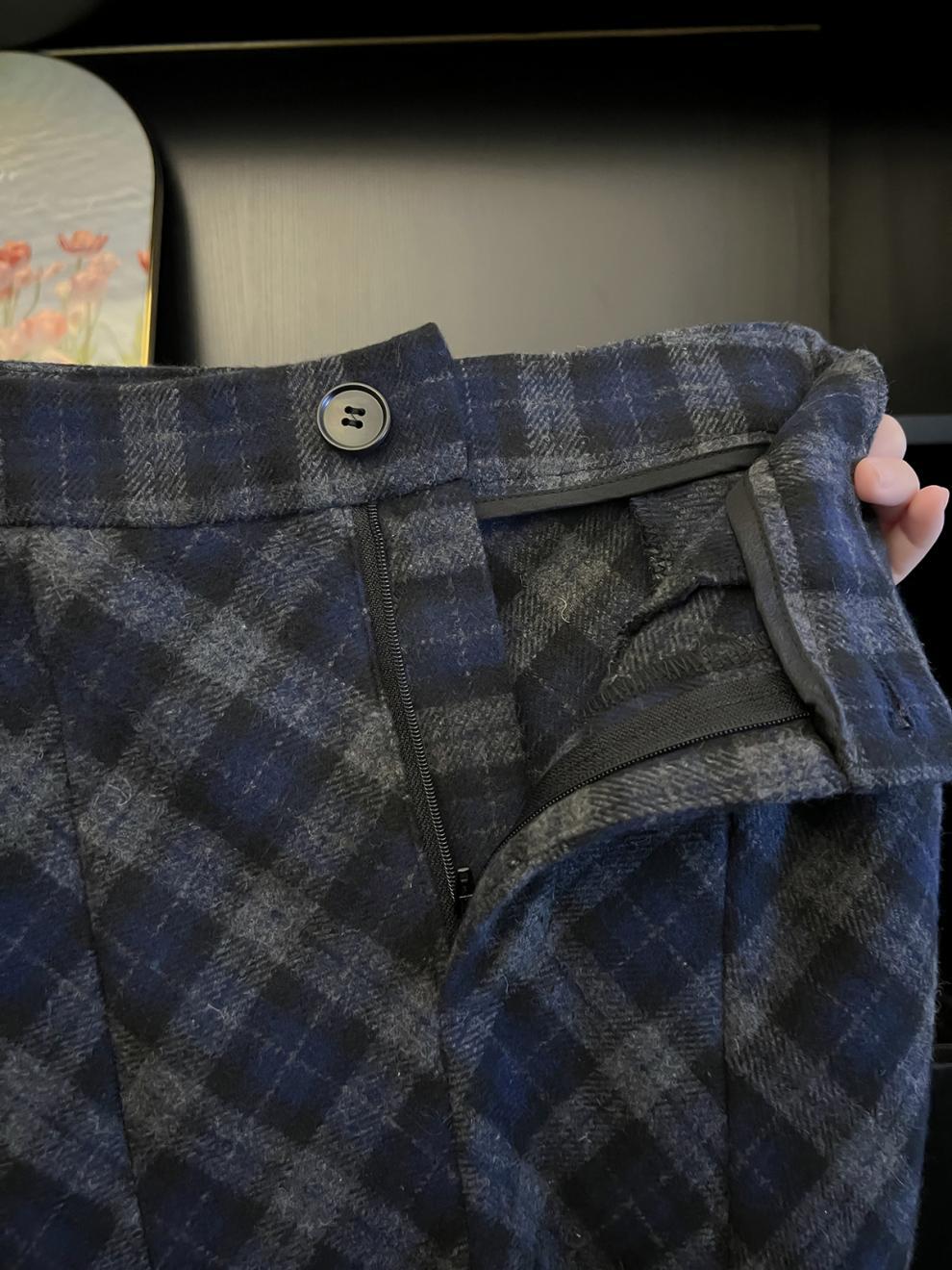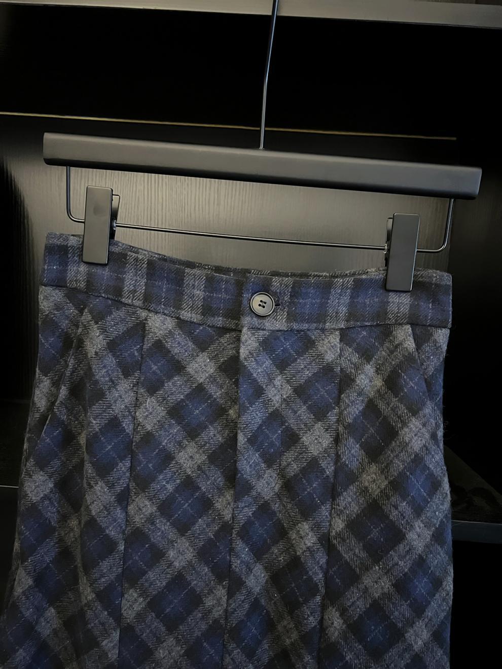 三标齐全 天猫品质 五线打边 斜纹蓝灰格纹磨毛半身裙秋冬加厚