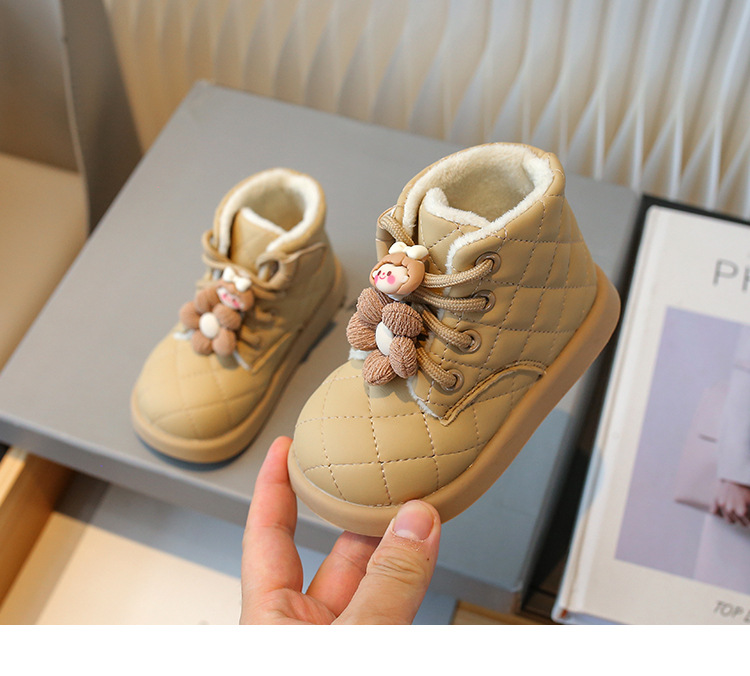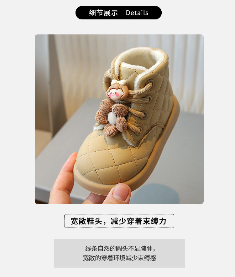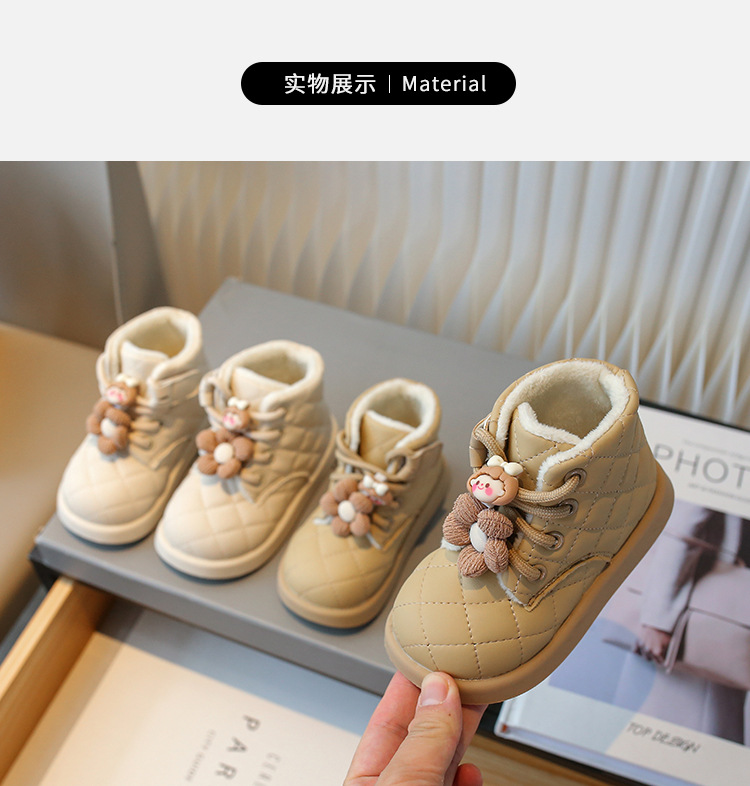 2025年女童冬款外翻毛卡通毛绒兔子挂件装饰磨砂皮宝宝学步小棉靴