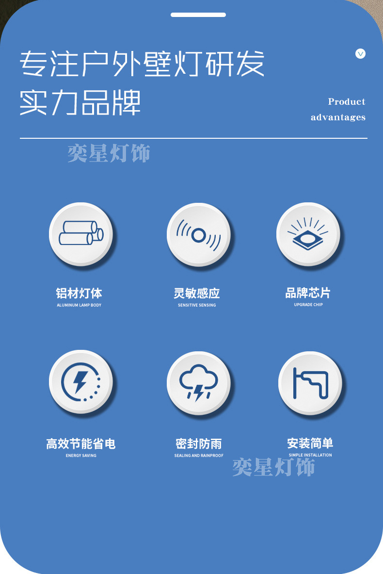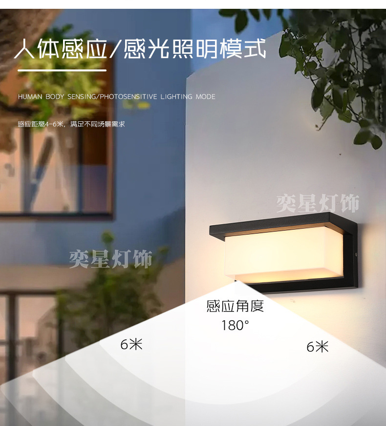 壁灯洗墙灯别墅庭院阳台过道走廊门口防水外墙暖光感应灯壁挂式