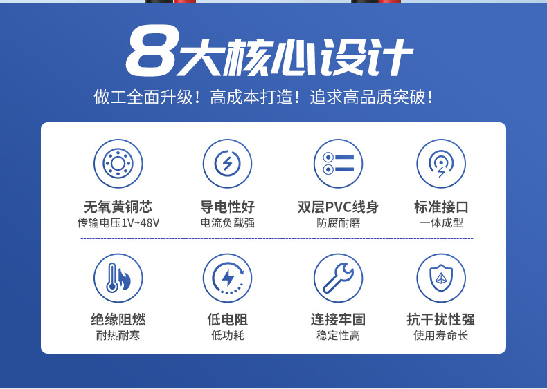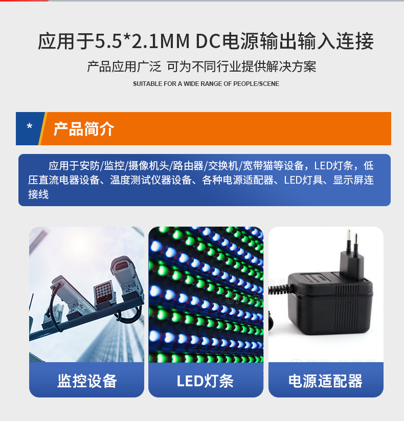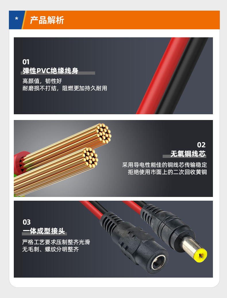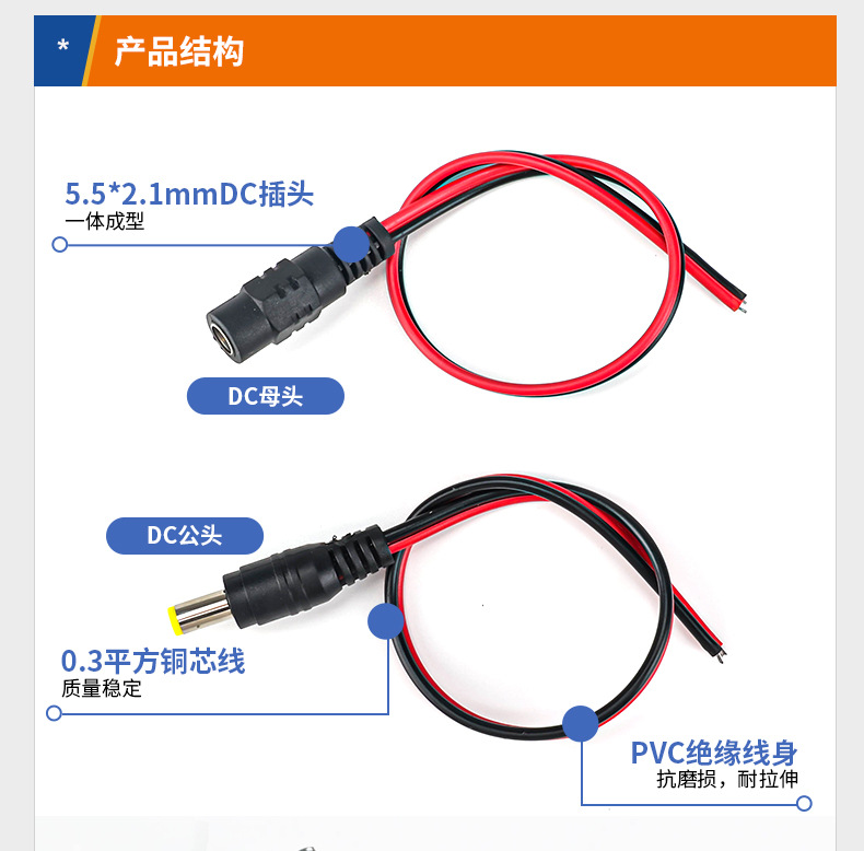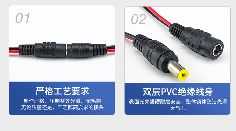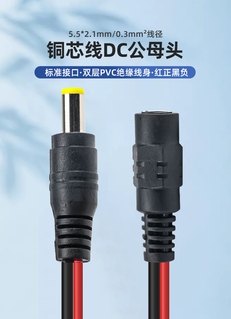 监控电源DC5.5*2.1铜芯接头线12 24V电源公母头线 直流红黑电源线