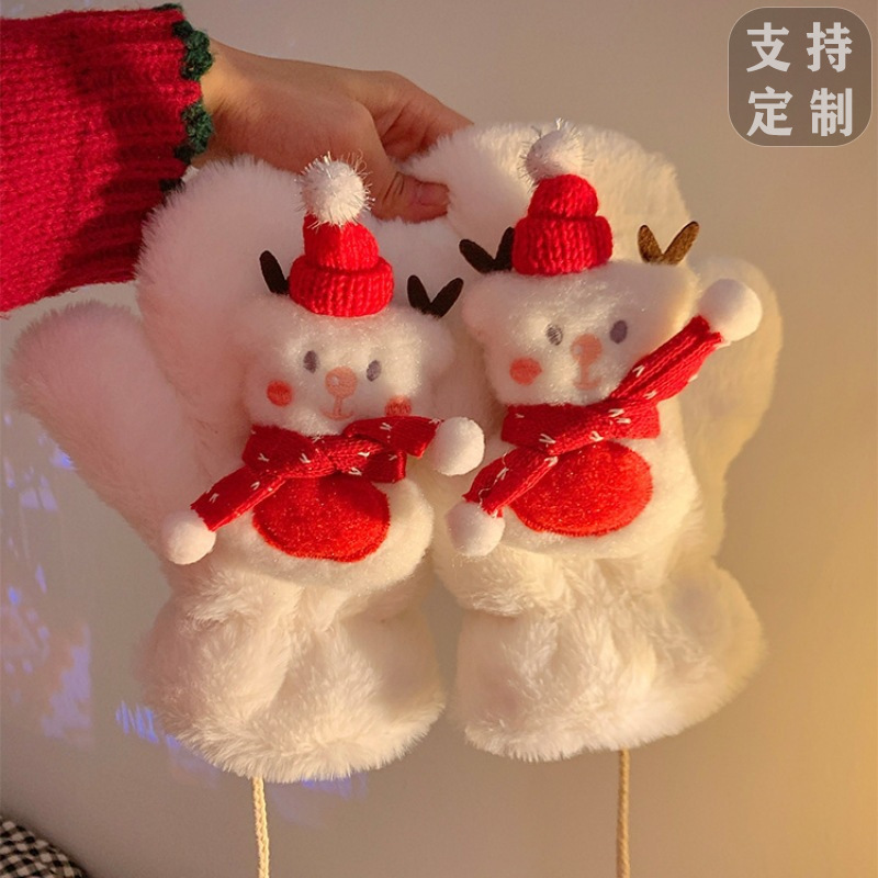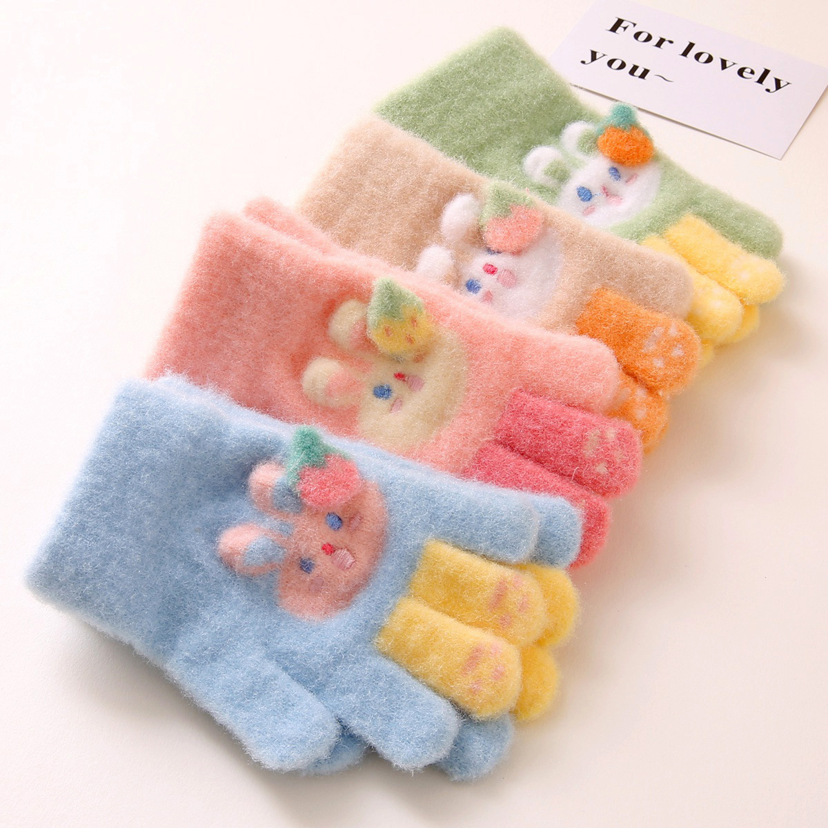 秋冬新款儿童手套加厚女孩五指彩色针织小兔分指手套冬季保暖防寒