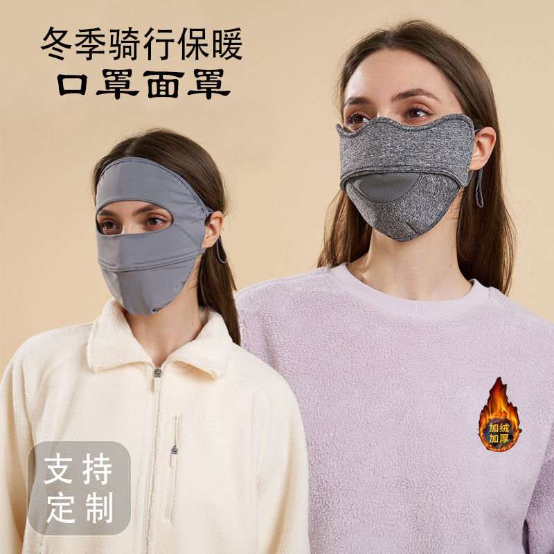 冬の新型騎行マスク保温女性全顔ジニ二重ベルベットマスク屋外防風防寒通気男