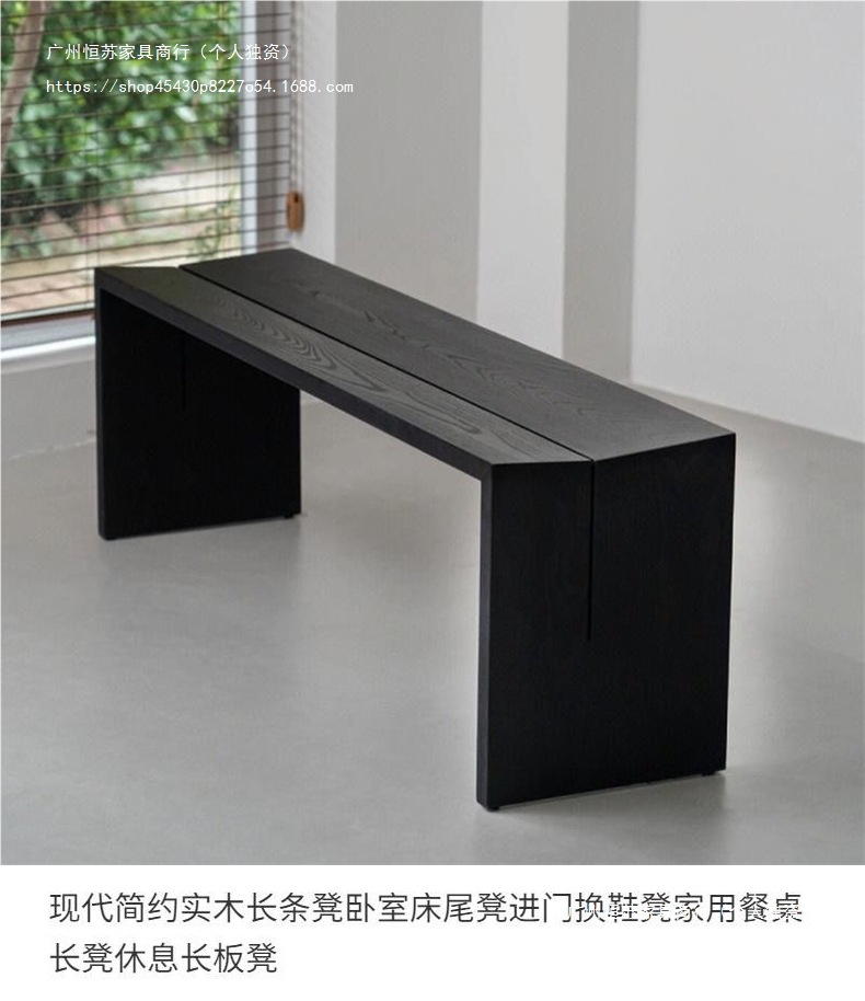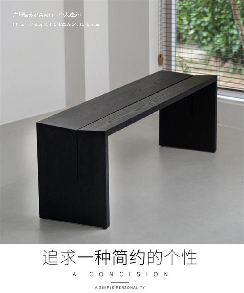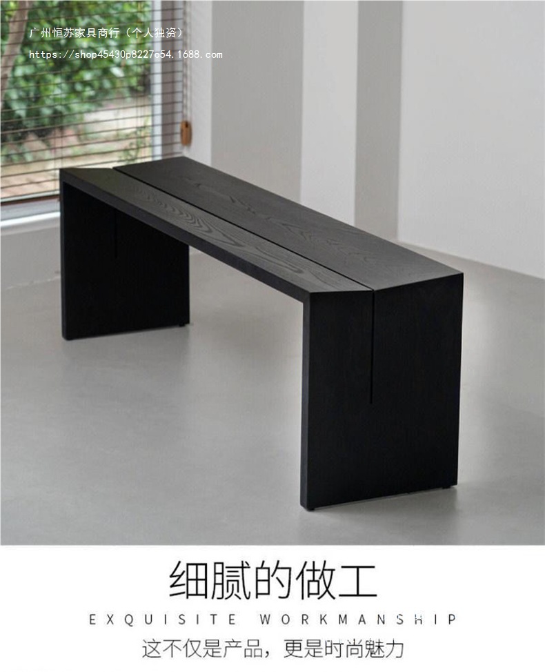 实木长条凳侘寂风黑色长凳换鞋凳卧室床尾凳家用客厅餐桌长凳家居