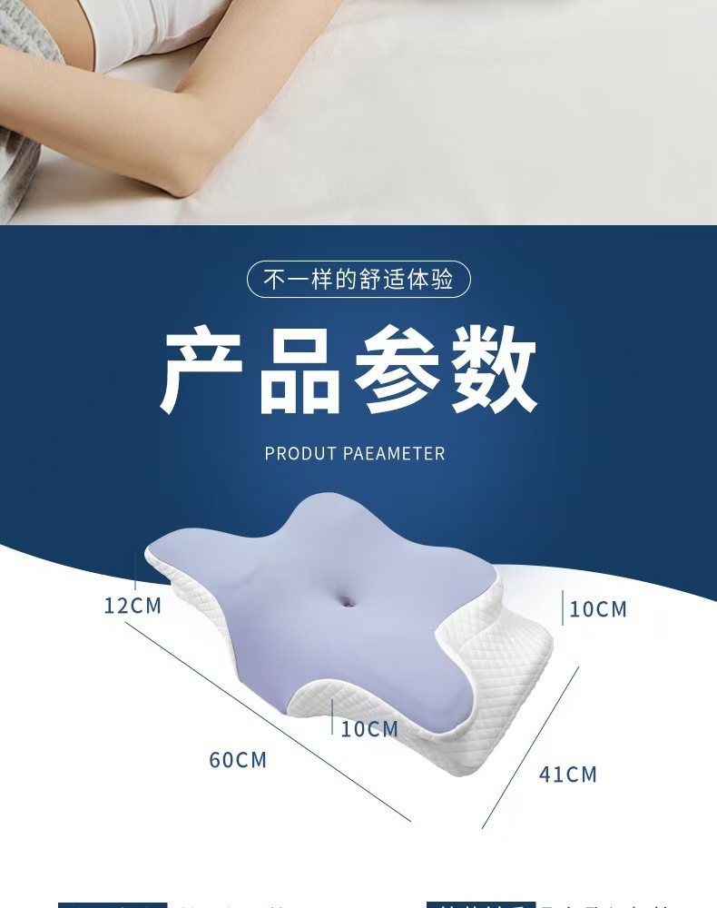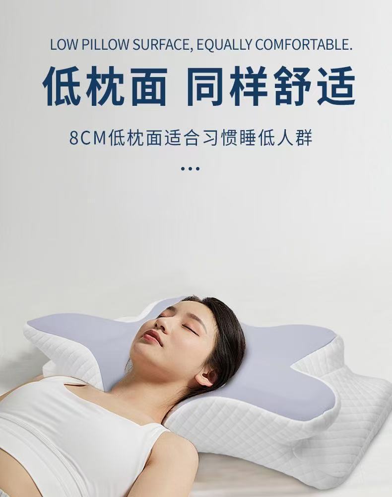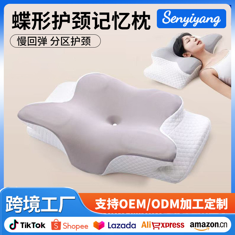 跨境蝶形颈椎枕护颈椎助睡眠记忆棉侧睡慢回弹深睡家用专用枕头芯
