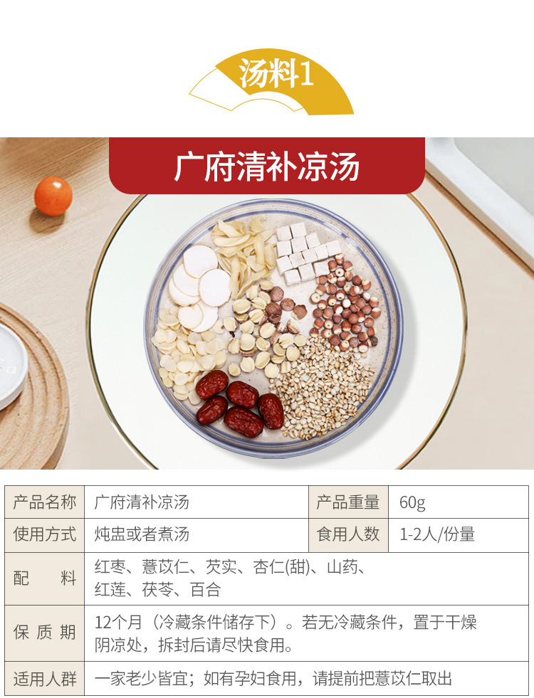 包装规格 清补凉60克,秋润套餐6包(共340克)