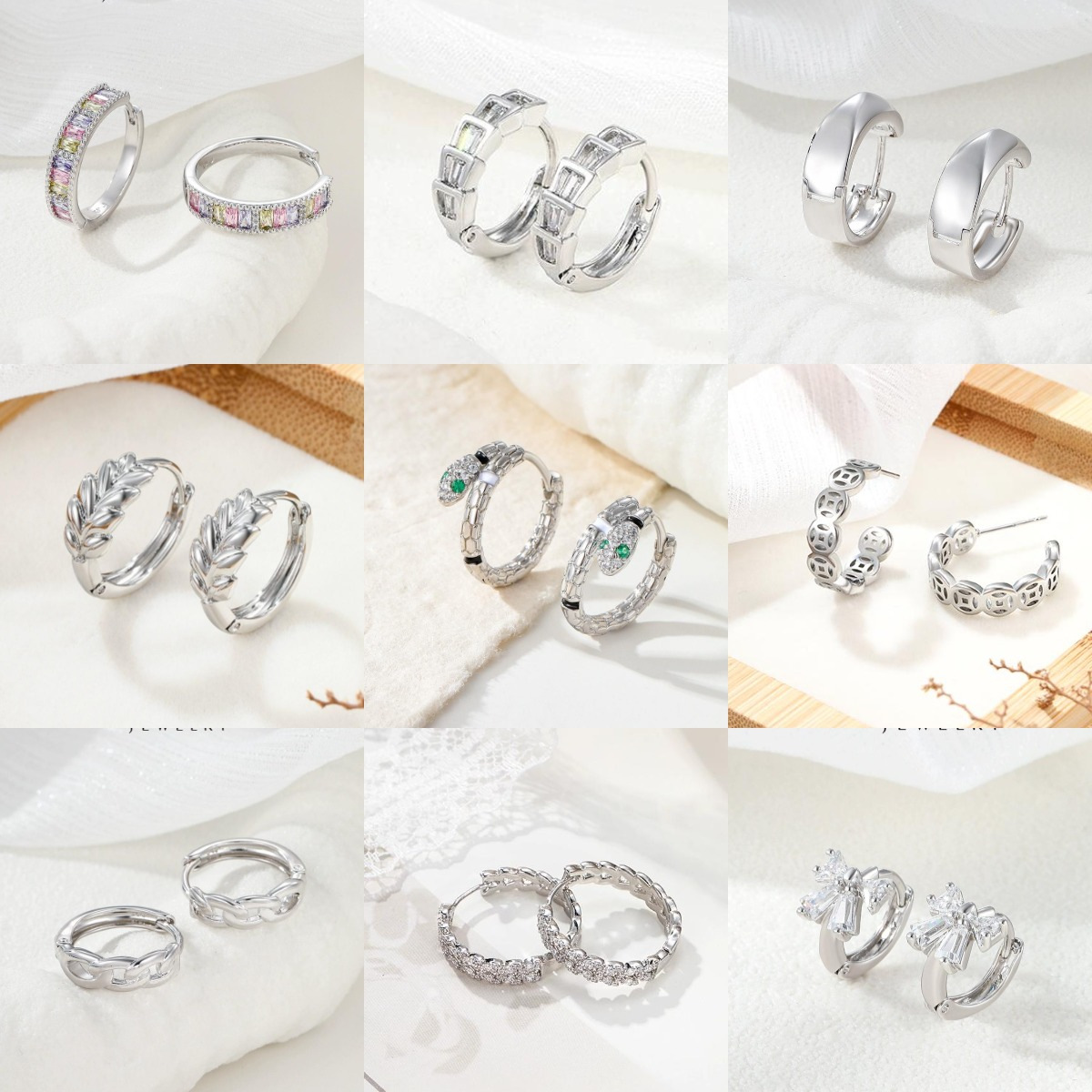 旭平 时尚简约气质镀白色耳环耳扣易搭ins风个性女士耳饰批发