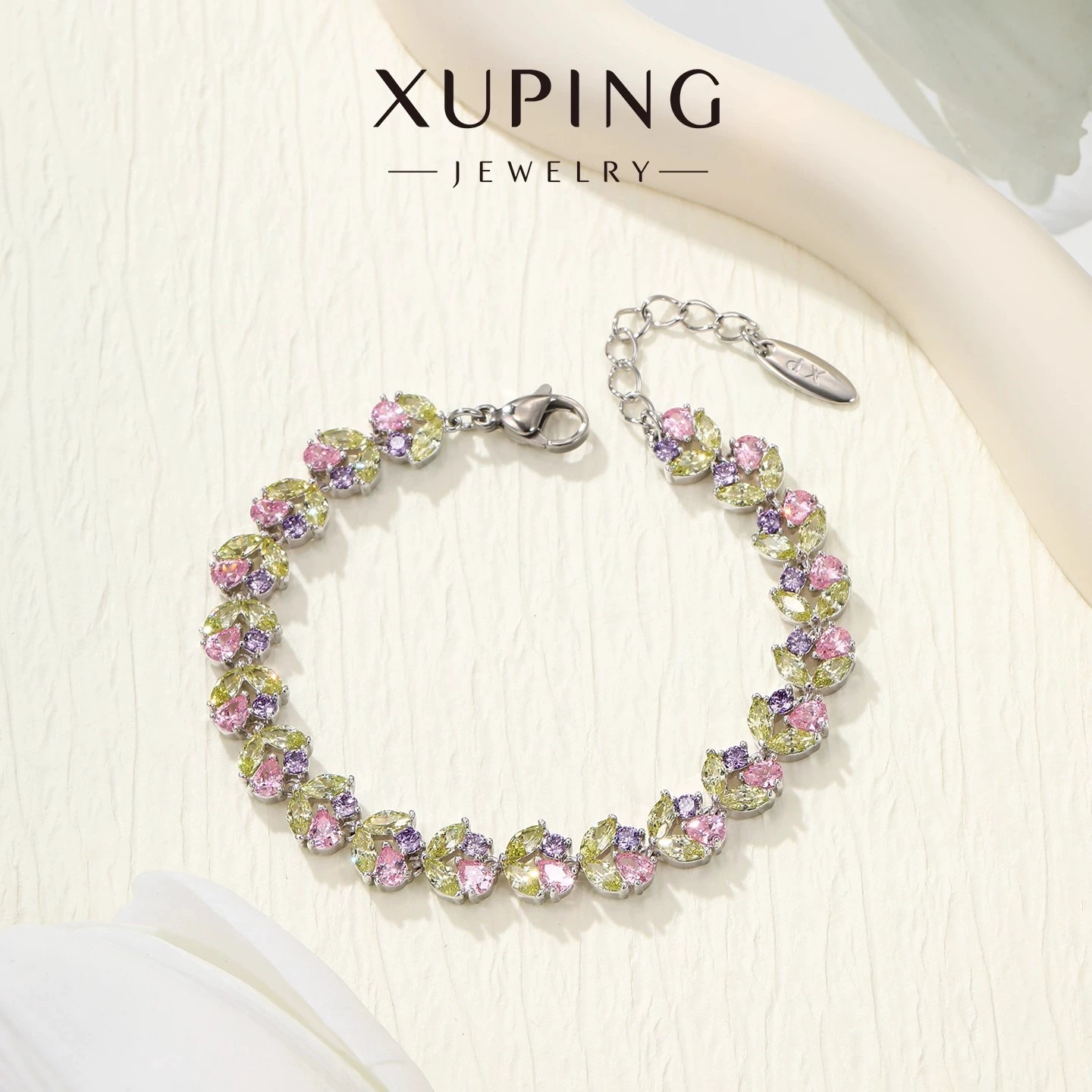 旭平彩宝系列时尚轻奢镶嵌彩色锆石麦穗手链优雅气质手饰女