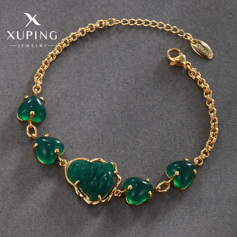 旭平 新型合金電気メッキ24Kカラー エメラルドハート装飾 中国風ブレスレット 個性的な雰囲気のハンドアクセサリー