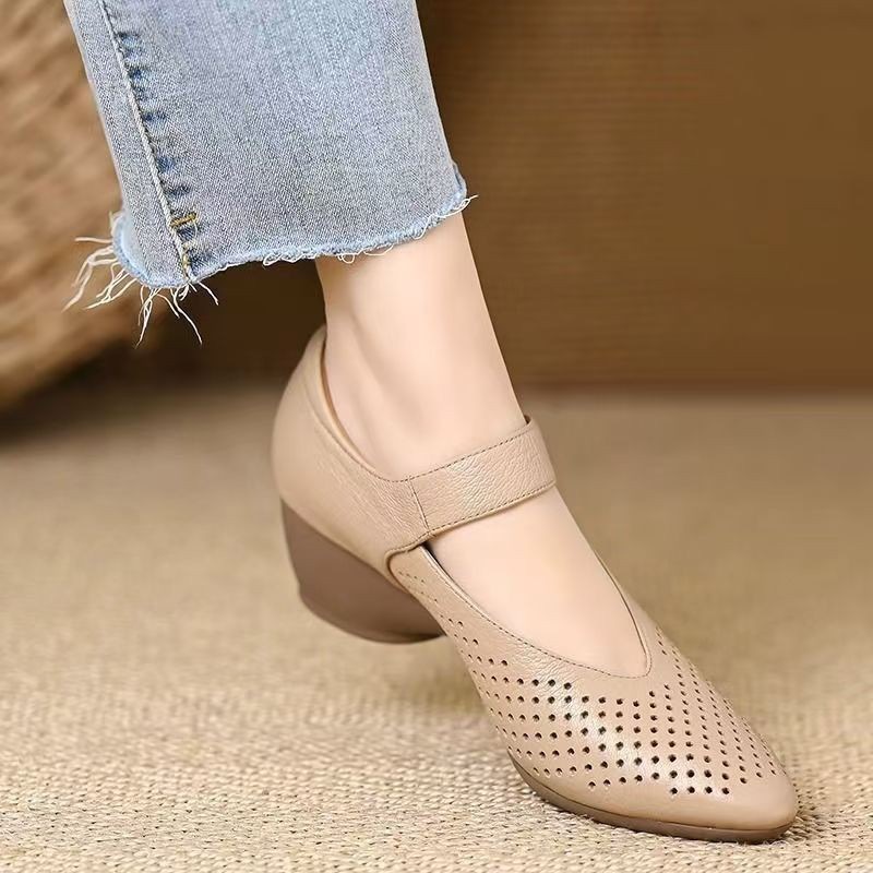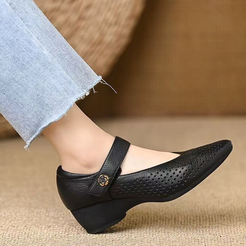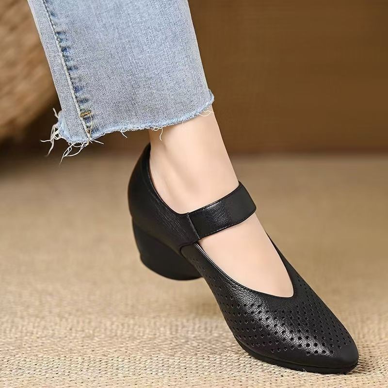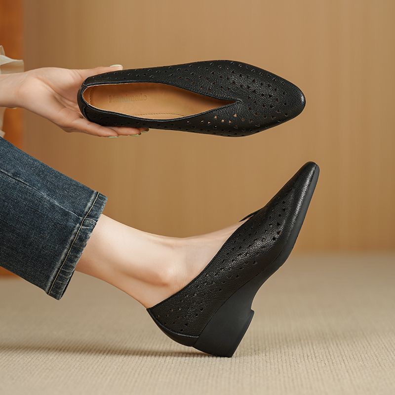 2025秋季简约经典女鞋洞洞厚底英伦风时尚休闲豆豆妈妈二穿单凉鞋