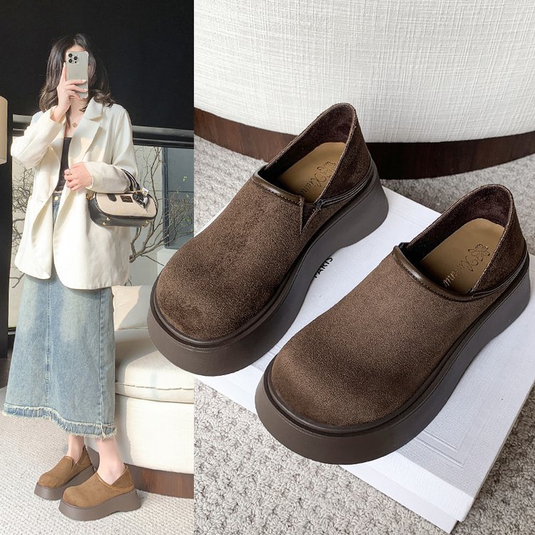 レトロな厚い底の楽福の靴の女性の2025新型の秋冬の百合は高くなります。