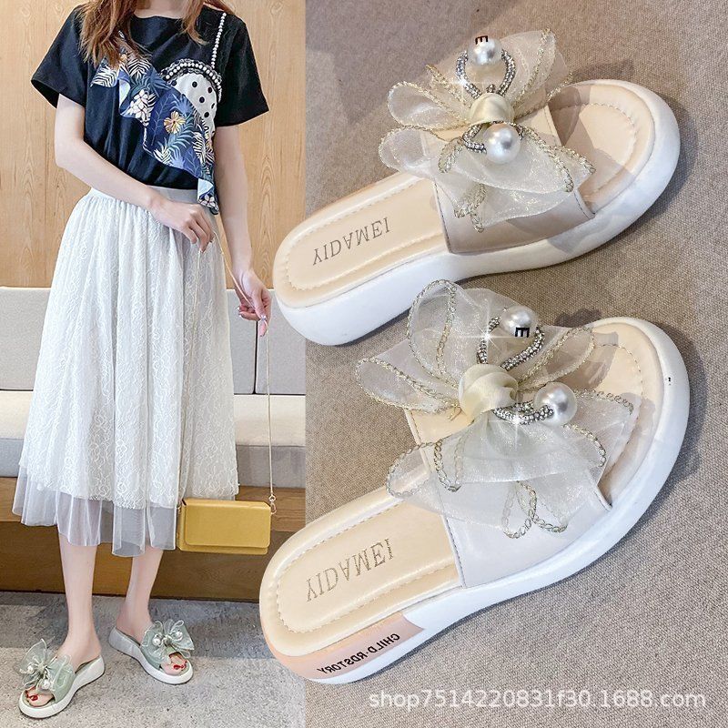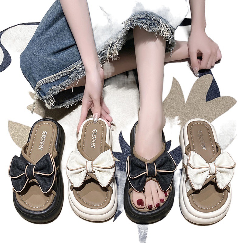 蝶結び滑り止め靴の女性サンダル潮2024年夏の新型起爆金はネットの赤いファッションの厚い底のサンダルを着ています。